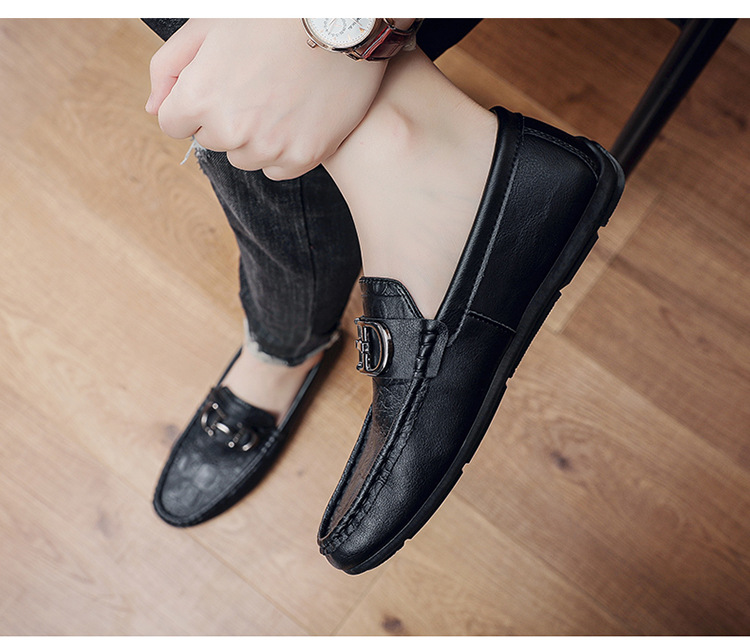 남성 신발 콩 신발 새로운 영국 스타일 패션 유행 캐주얼 남성 신발 통기성 슬립 온 남성 신발 로퍼 가죽 신발