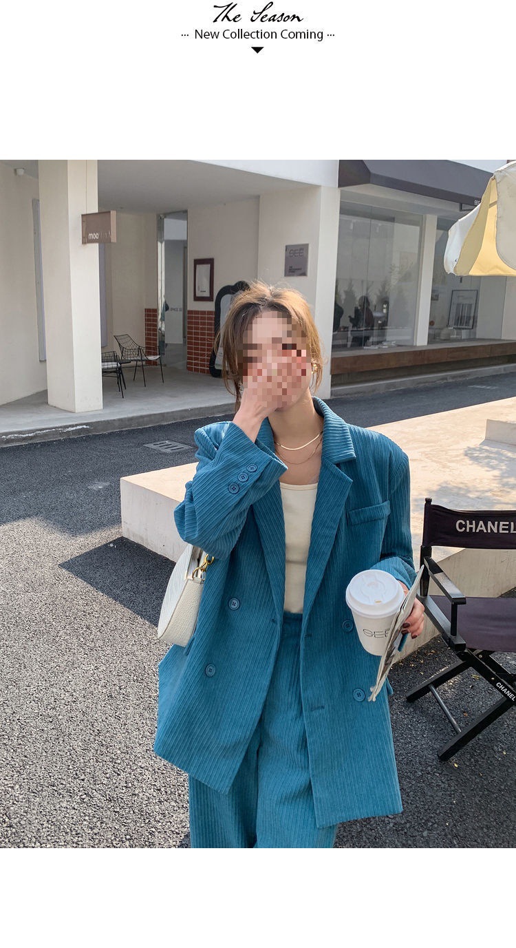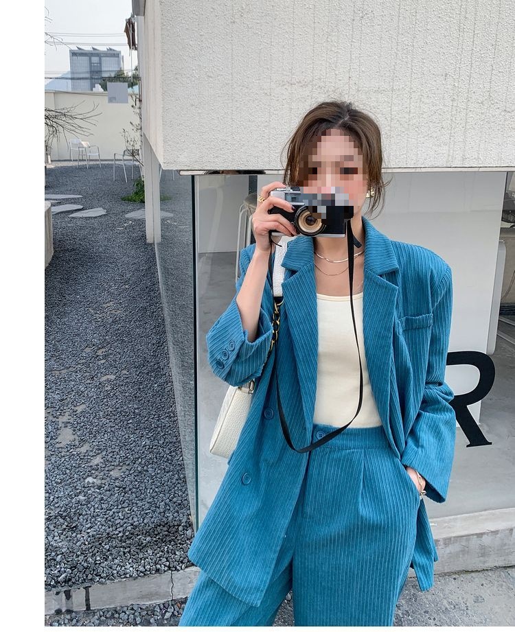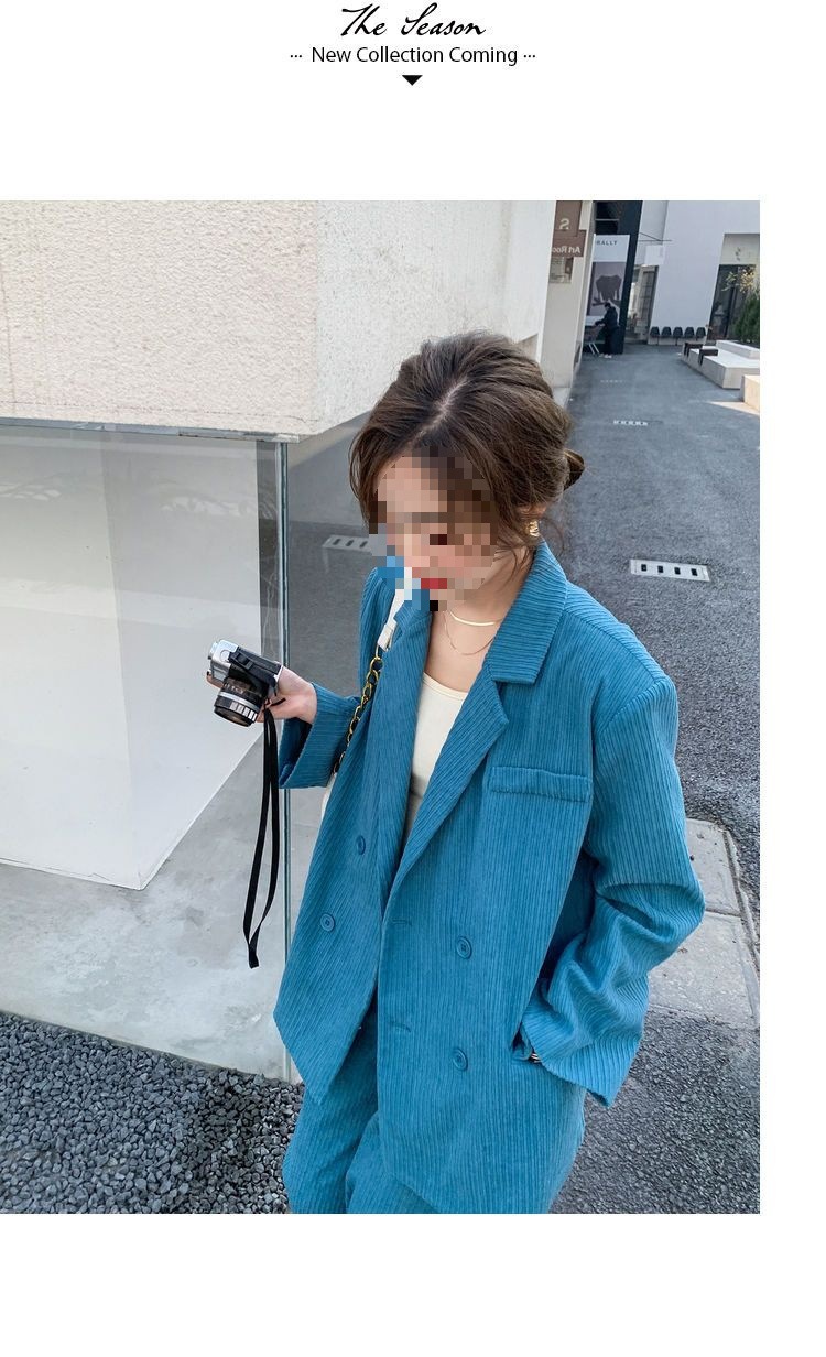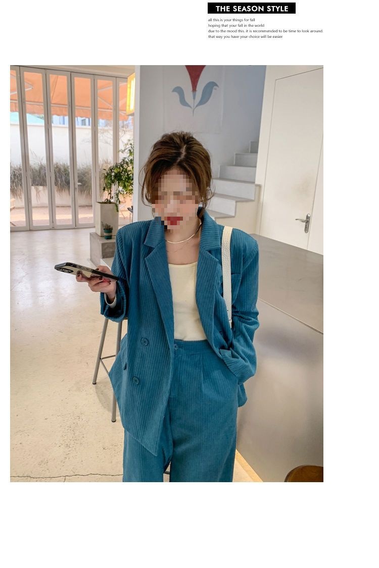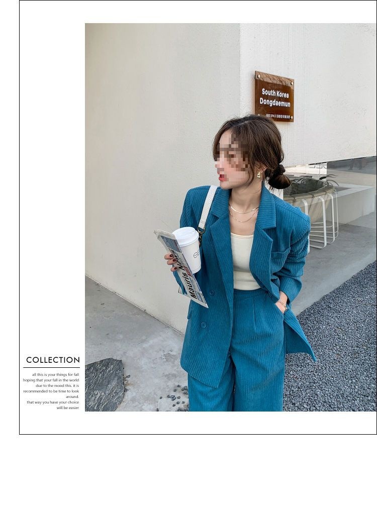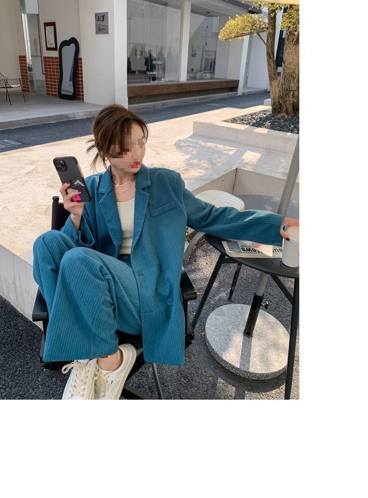 블루 코듀로이 세트 세트 여성 한국식 느슨한 가을 새로운 캐주얼 폭발성 세트 투피스 유행 세트