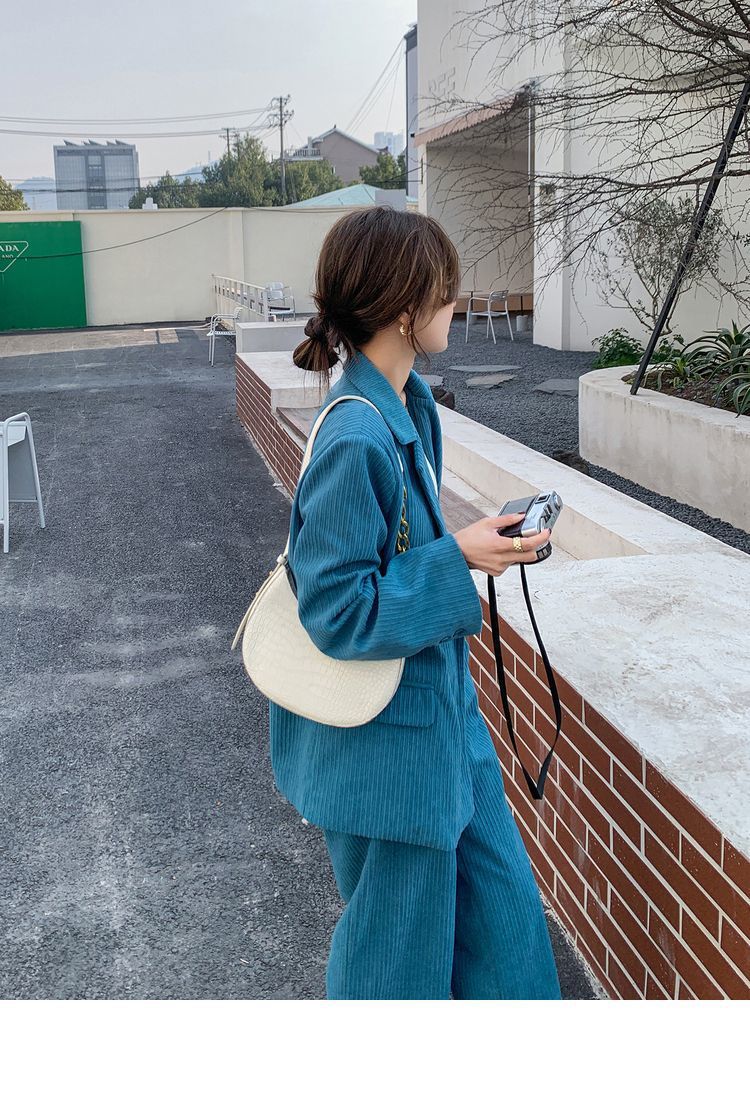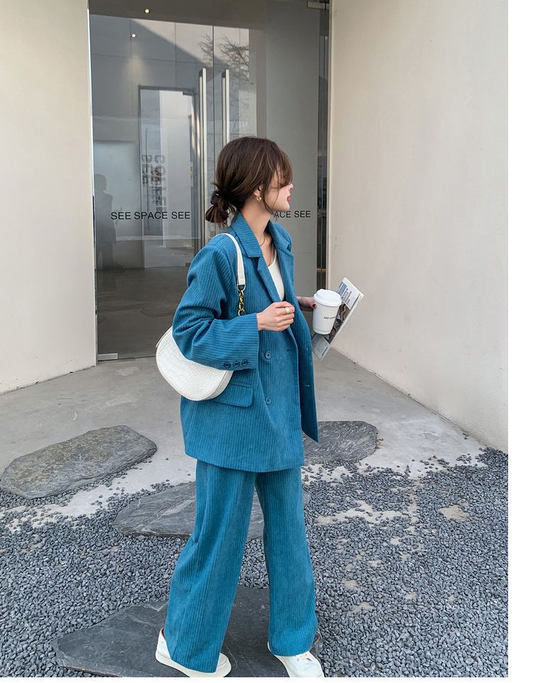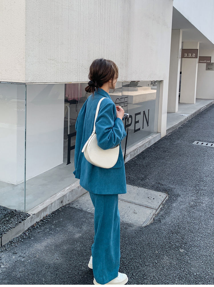 블루 코듀로이 세트 세트 여성 한국식 느슨한 가을 새로운 캐주얼 폭발성 세트 투피스 유행 세트스토어 가기