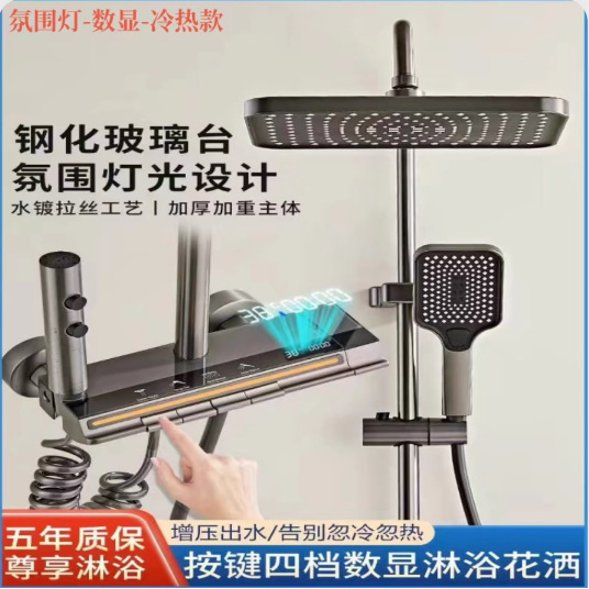 고급 구리 샤워 세트 욕실 디지털 디스플레이 샤워 가구 일정한 온도 버튼 샤워 헤드 세트