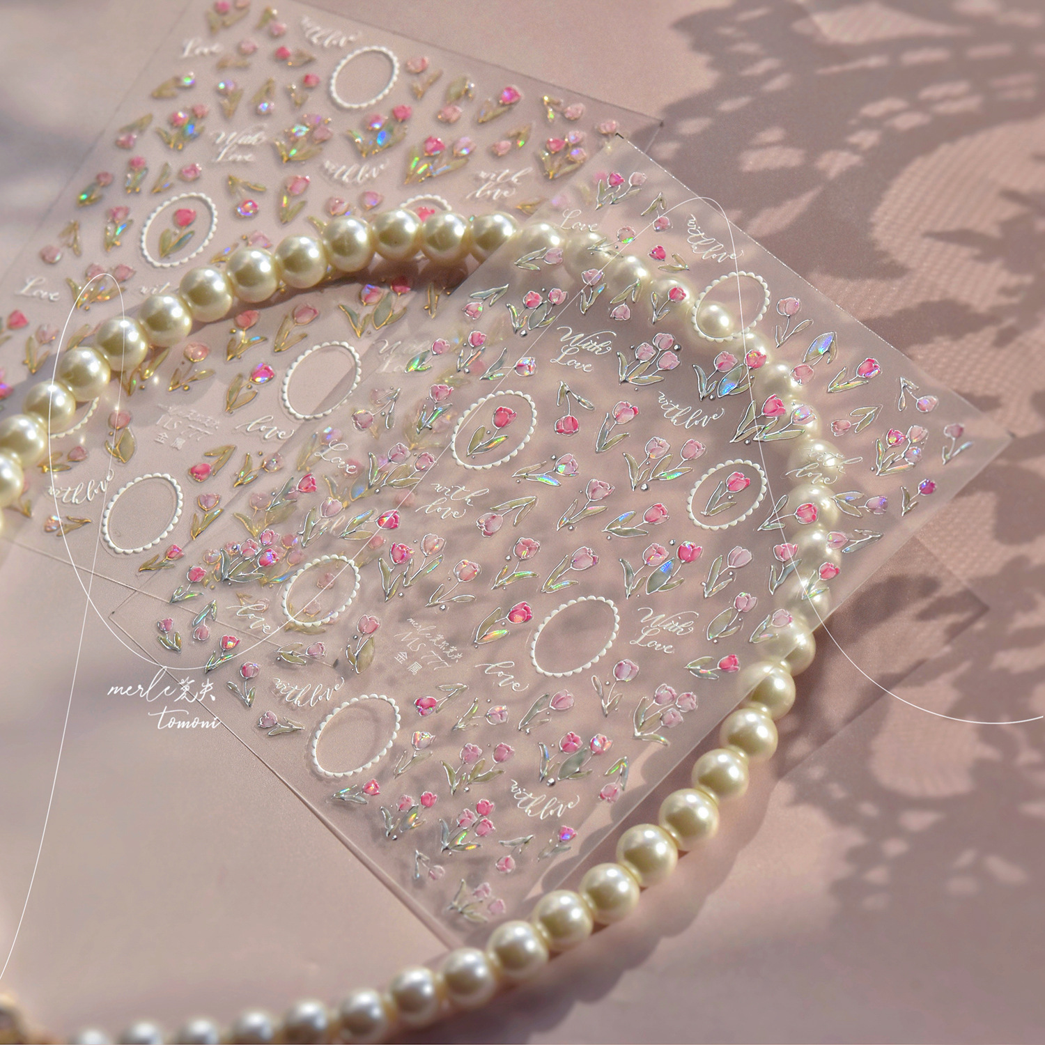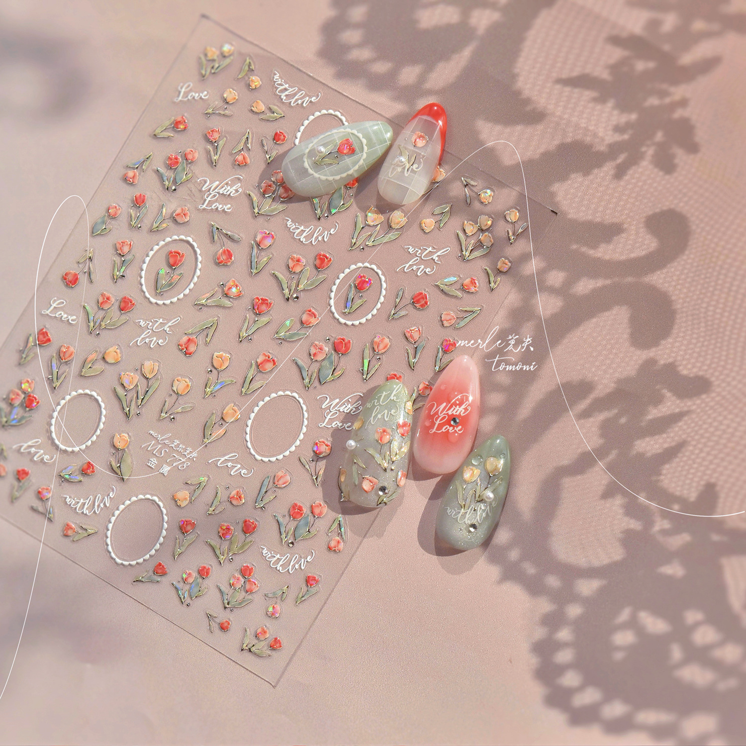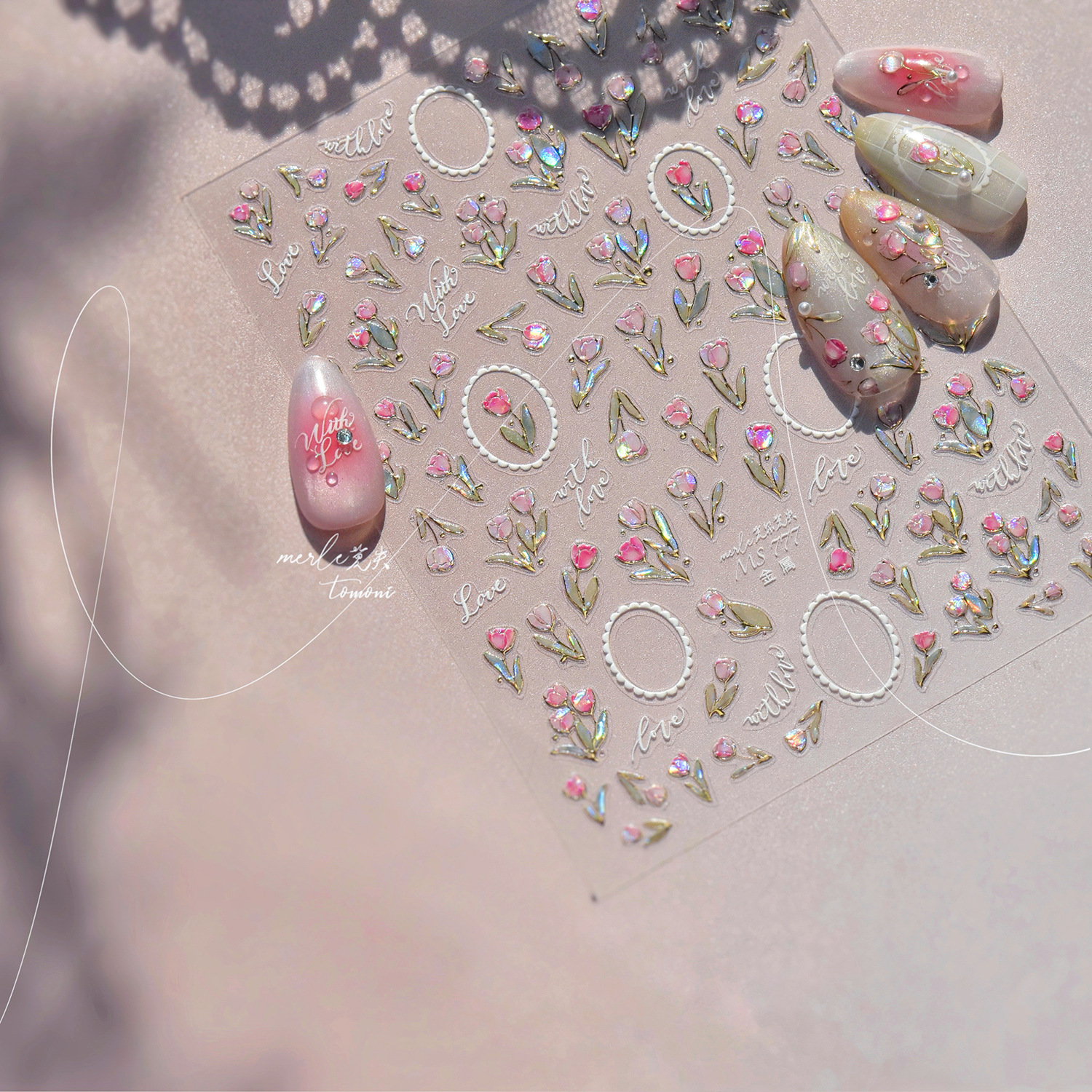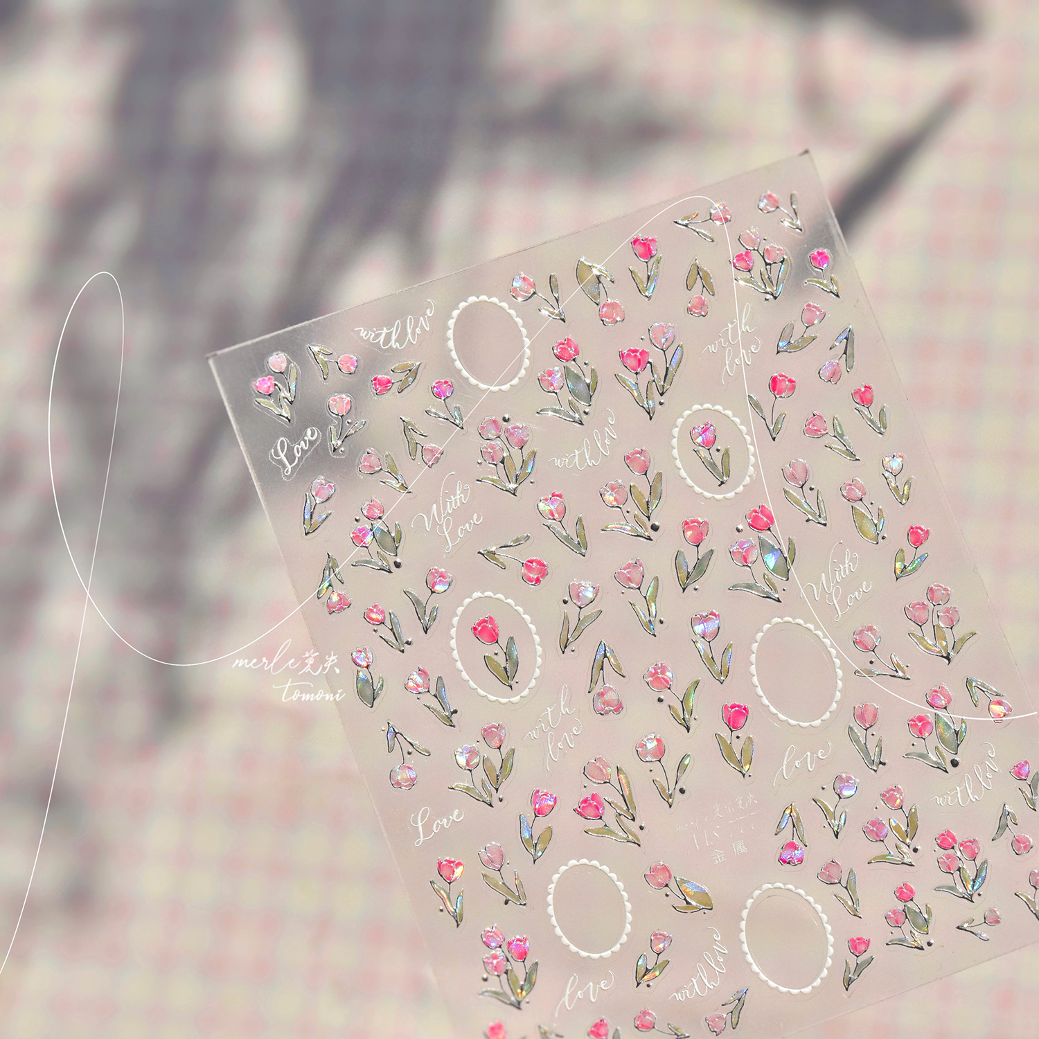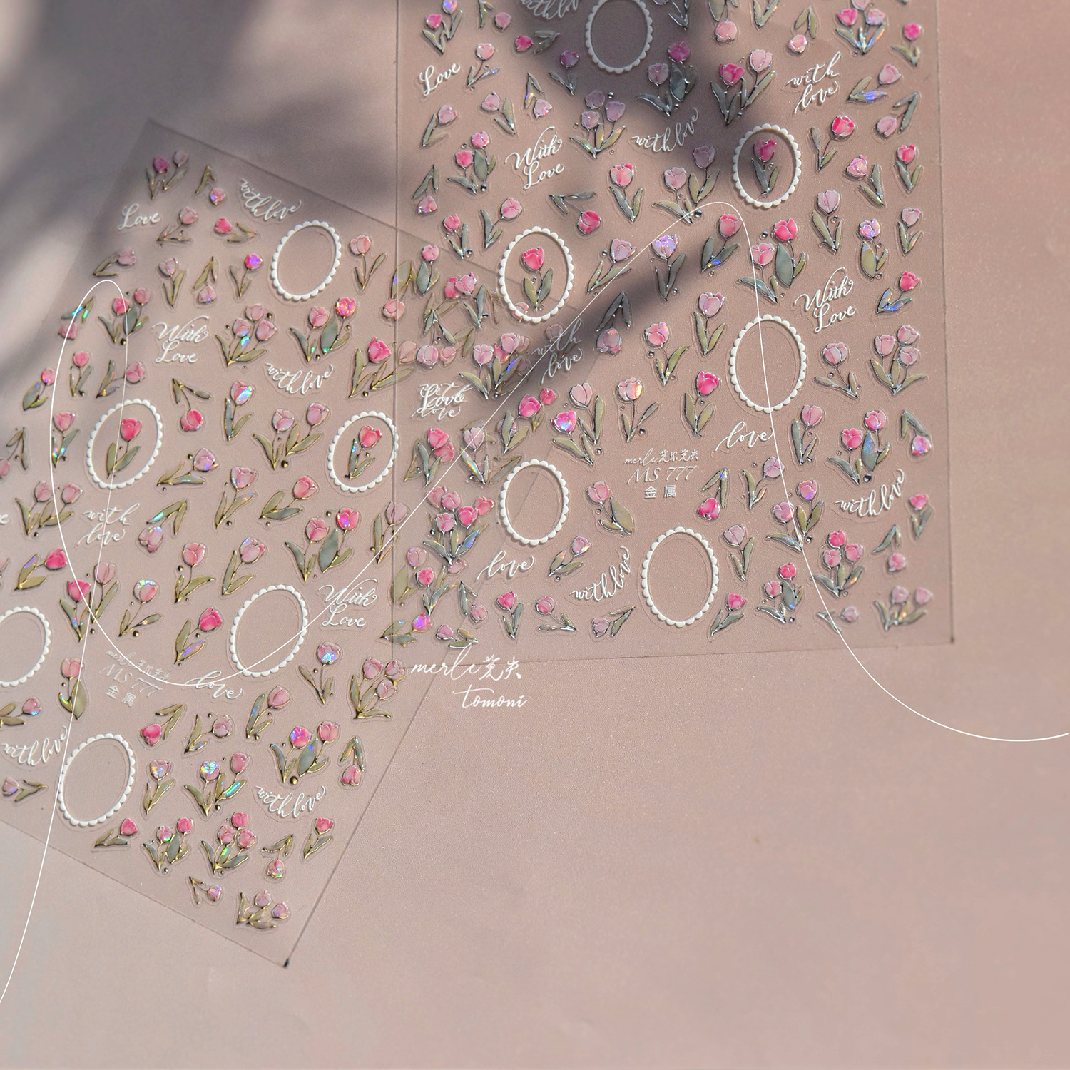 Tomoni 도금 네일 아트 스티커는 협력을 잃지 않습니다 폭발성 휴대 전화 네일 스티커 튤립 네일 아트 스티커스토어 가기
