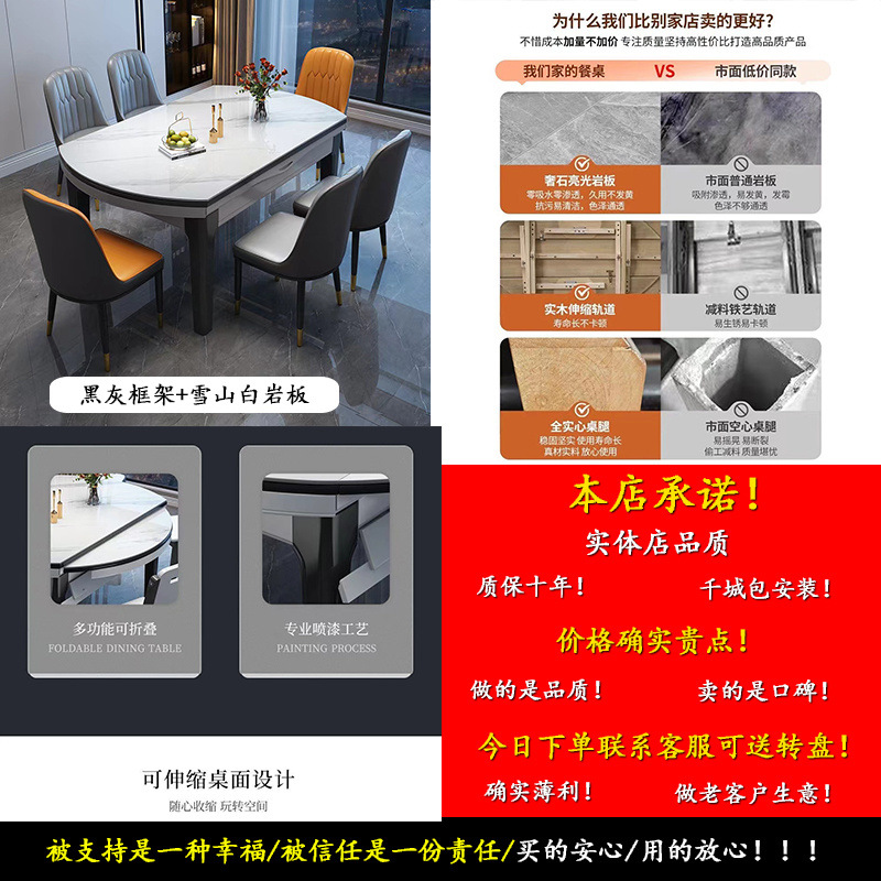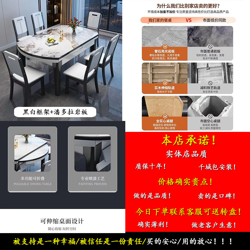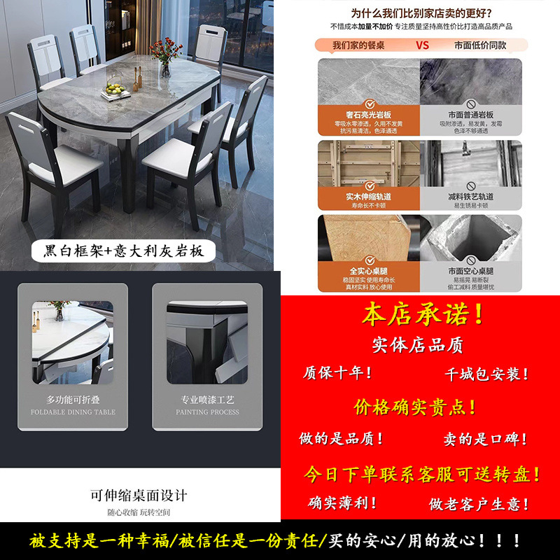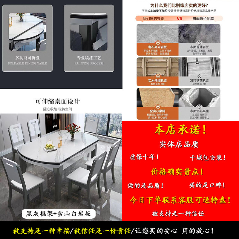 암판 식탁 및 의자 조합 개폐식 Fangyuan 이중 목적 명품 가정용 작은 아파트 식탁 원탁이있는 단단한 나무 식탁스토어 가기