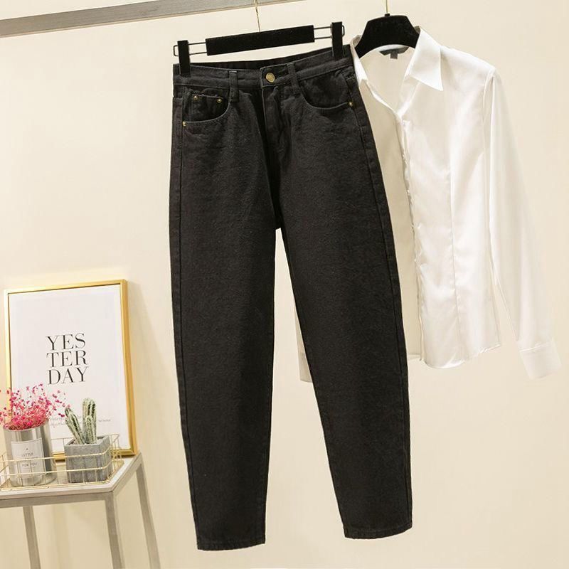 [2 차 레포] 청바지 여성의 봄과 가을 새로운 높은 허리 슬리밍 무 팬츠 느슨한 넓은 다리 스트레이트 토레
