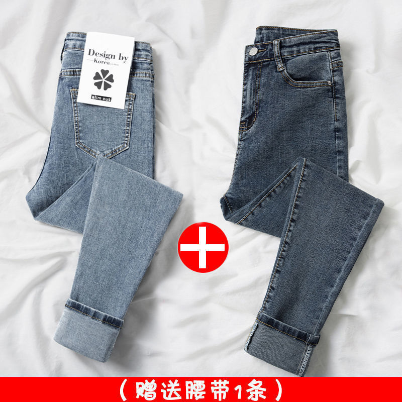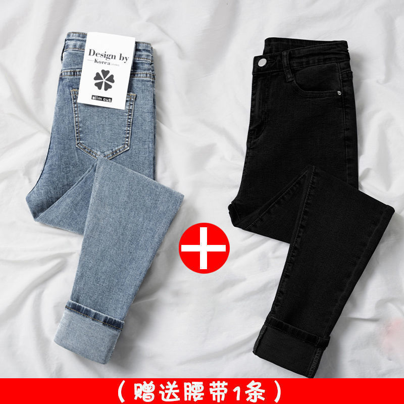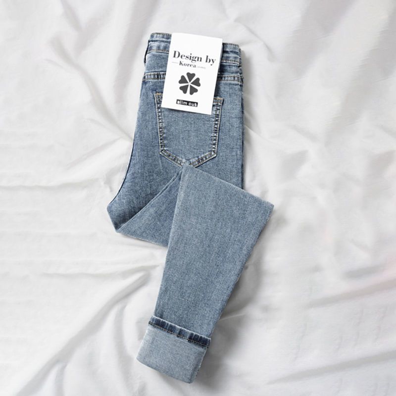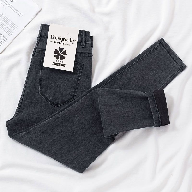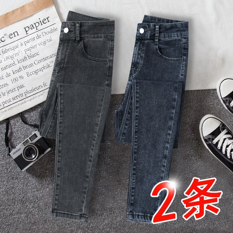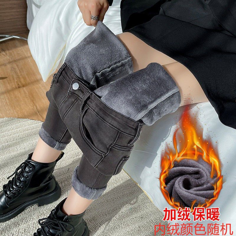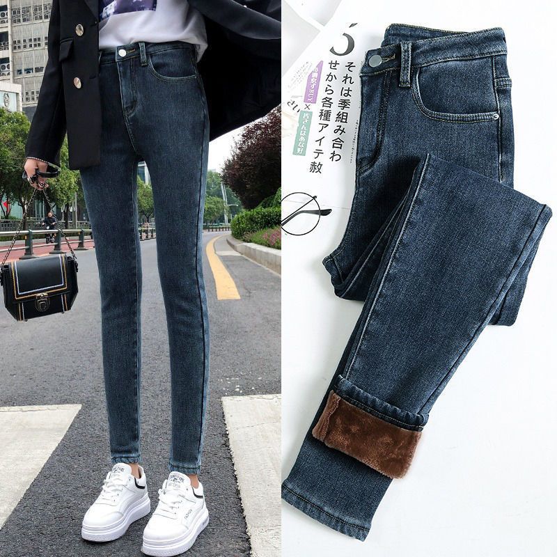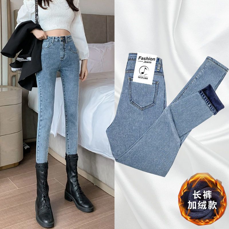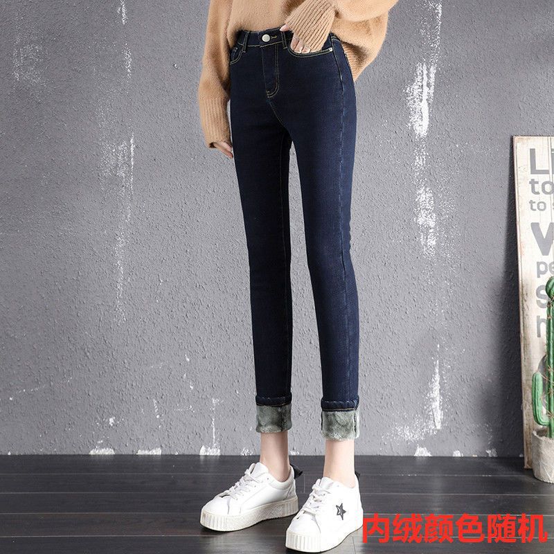 -진 플러스 사이즈 가을과 겨울 새 청바지 여성의 높은 허리 슬리밍 스트레치 기모 타이트한 다리 바지스토어 가기