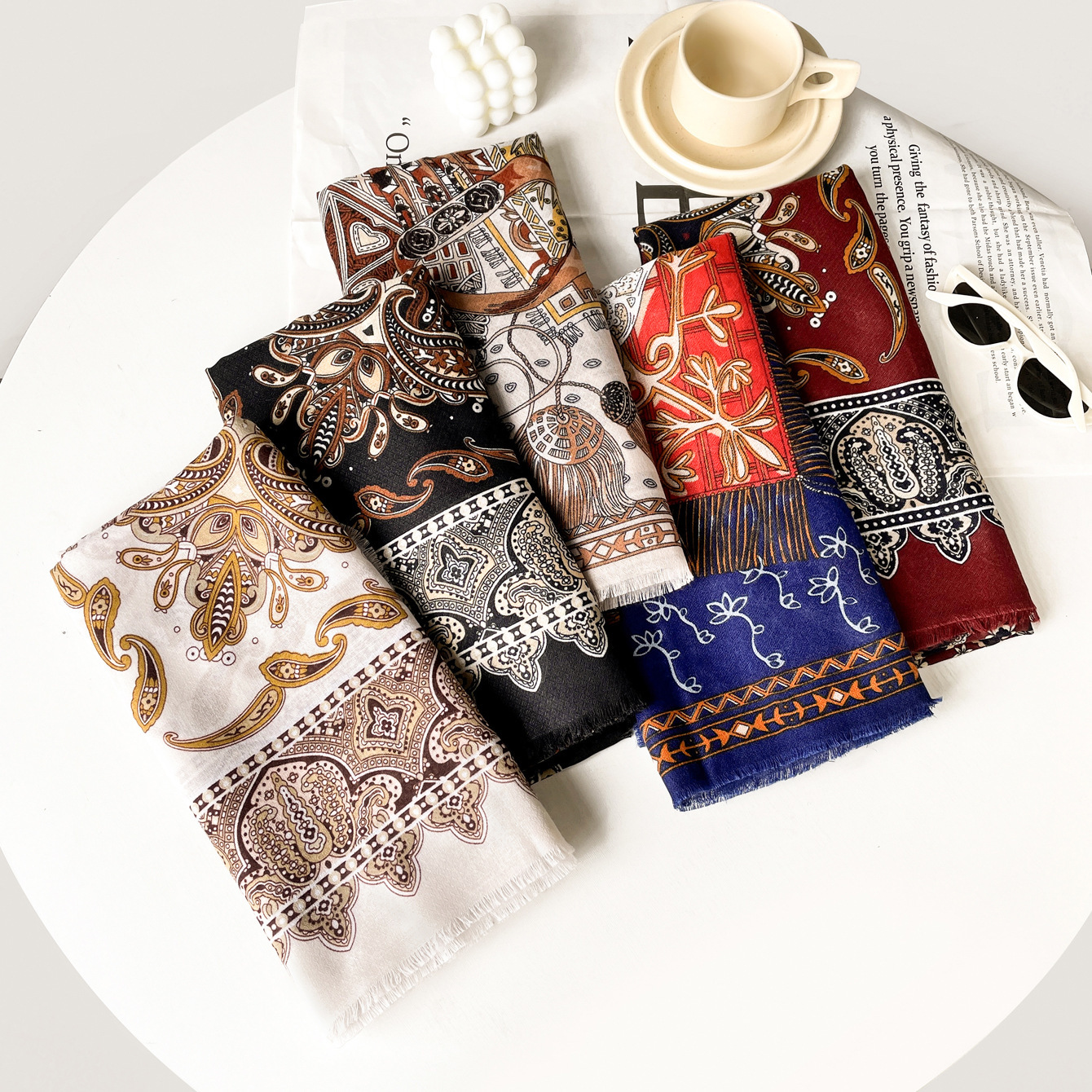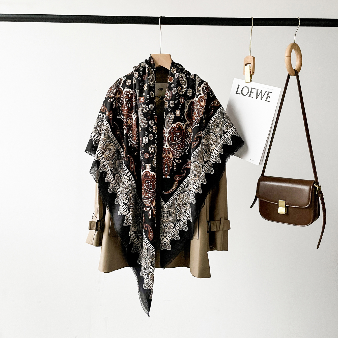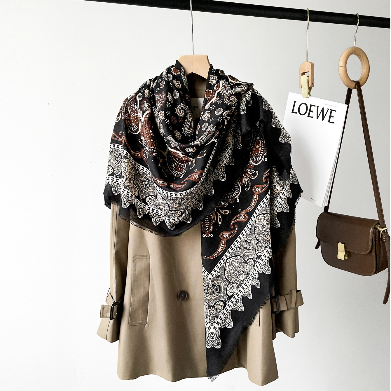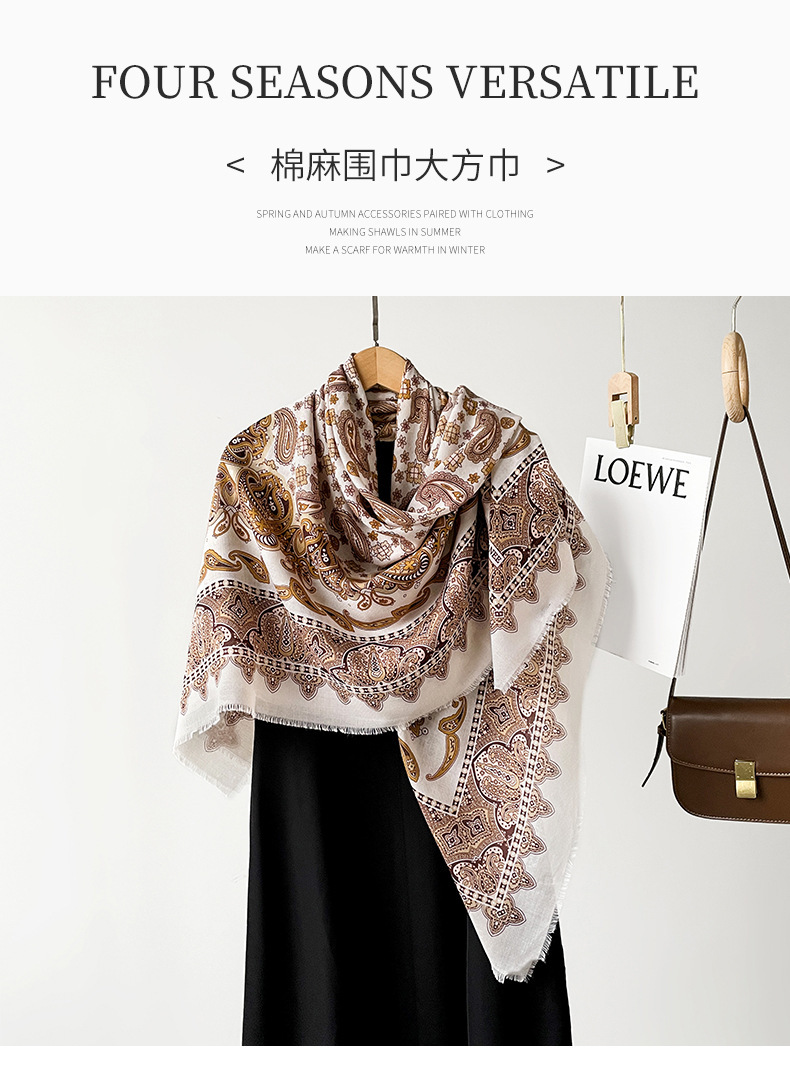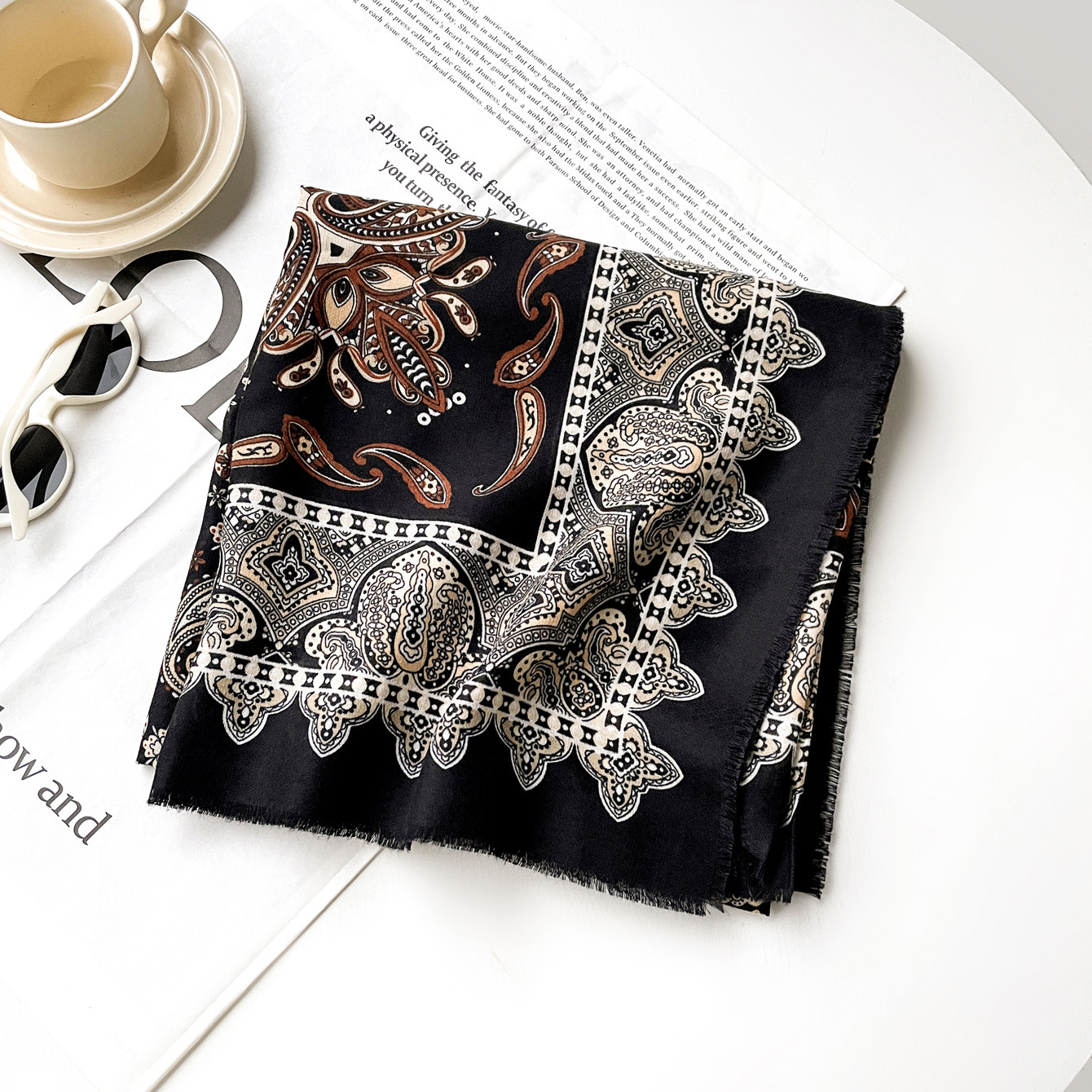 국경 간 봄 새로운 모조 면 및 린넨 대형 스퀘어 스카프 고급 실크 스카프 여성 복고풍 패션 블랙 캐슈 인쇄 스카프
