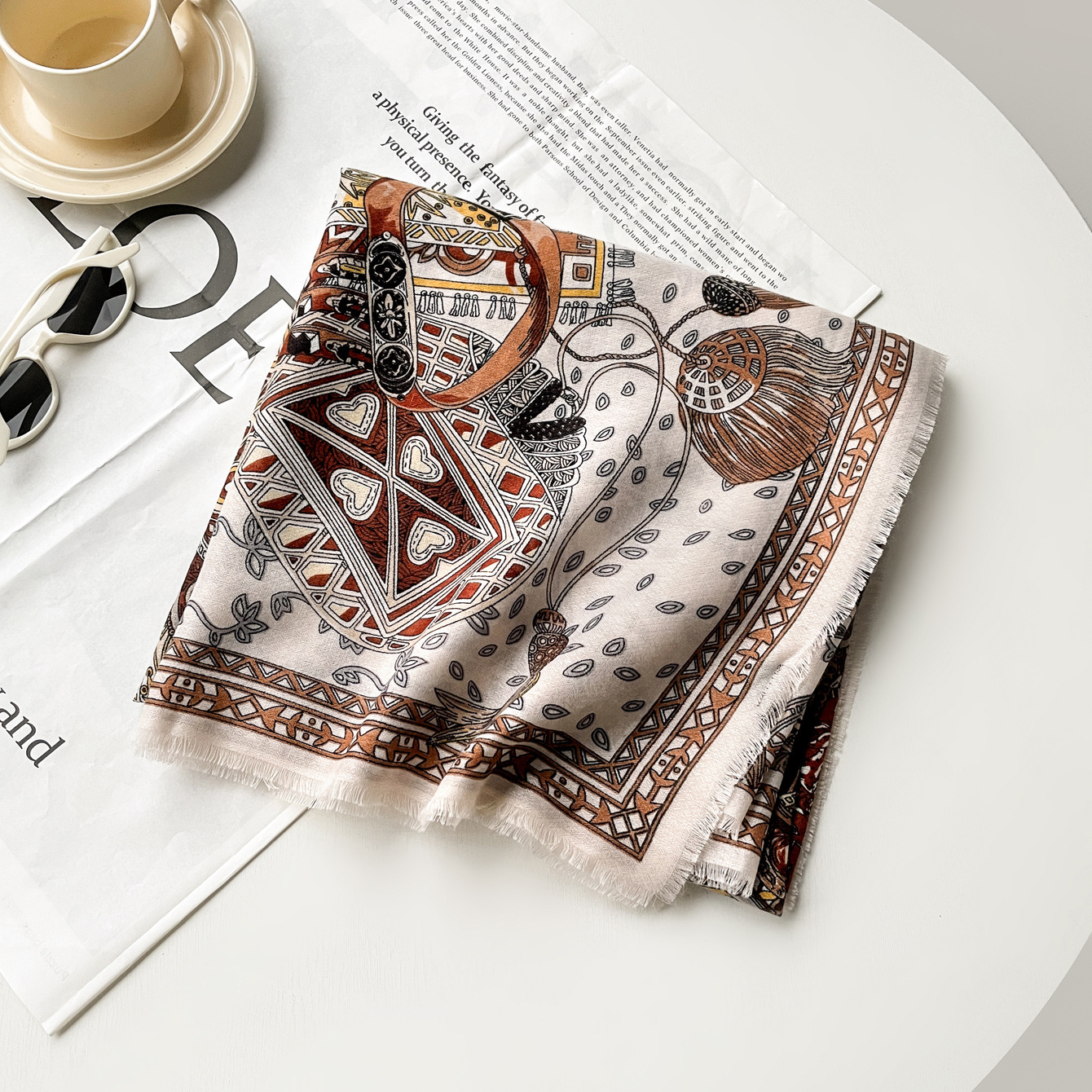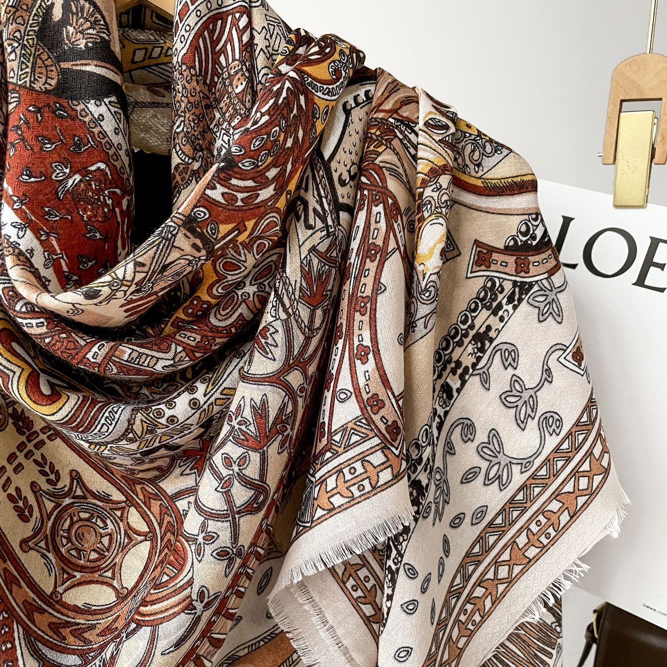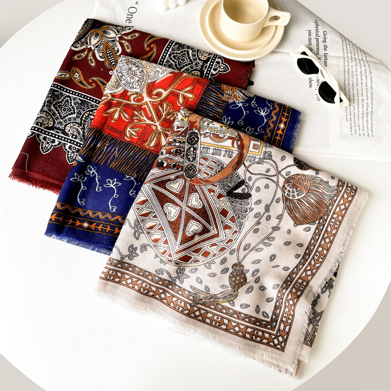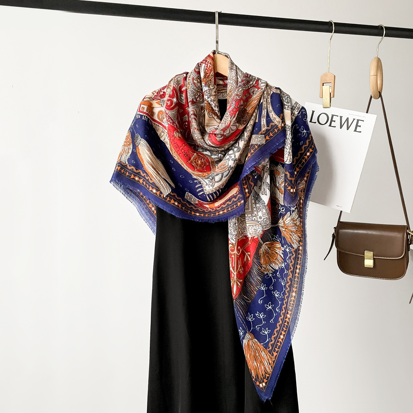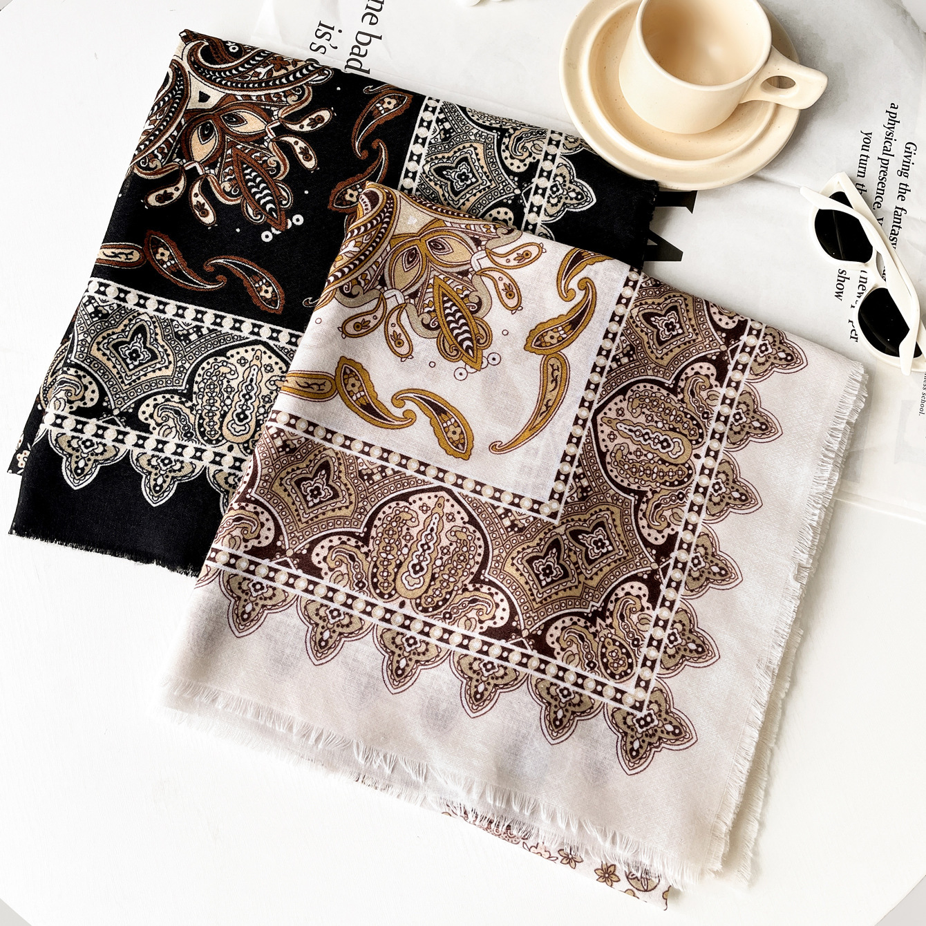 국경 간 봄 새로운 모조 면 및 린넨 대형 스퀘어 스카프 고급 실크 스카프 여성 복고풍 패션 블랙 캐슈 인쇄 스카프