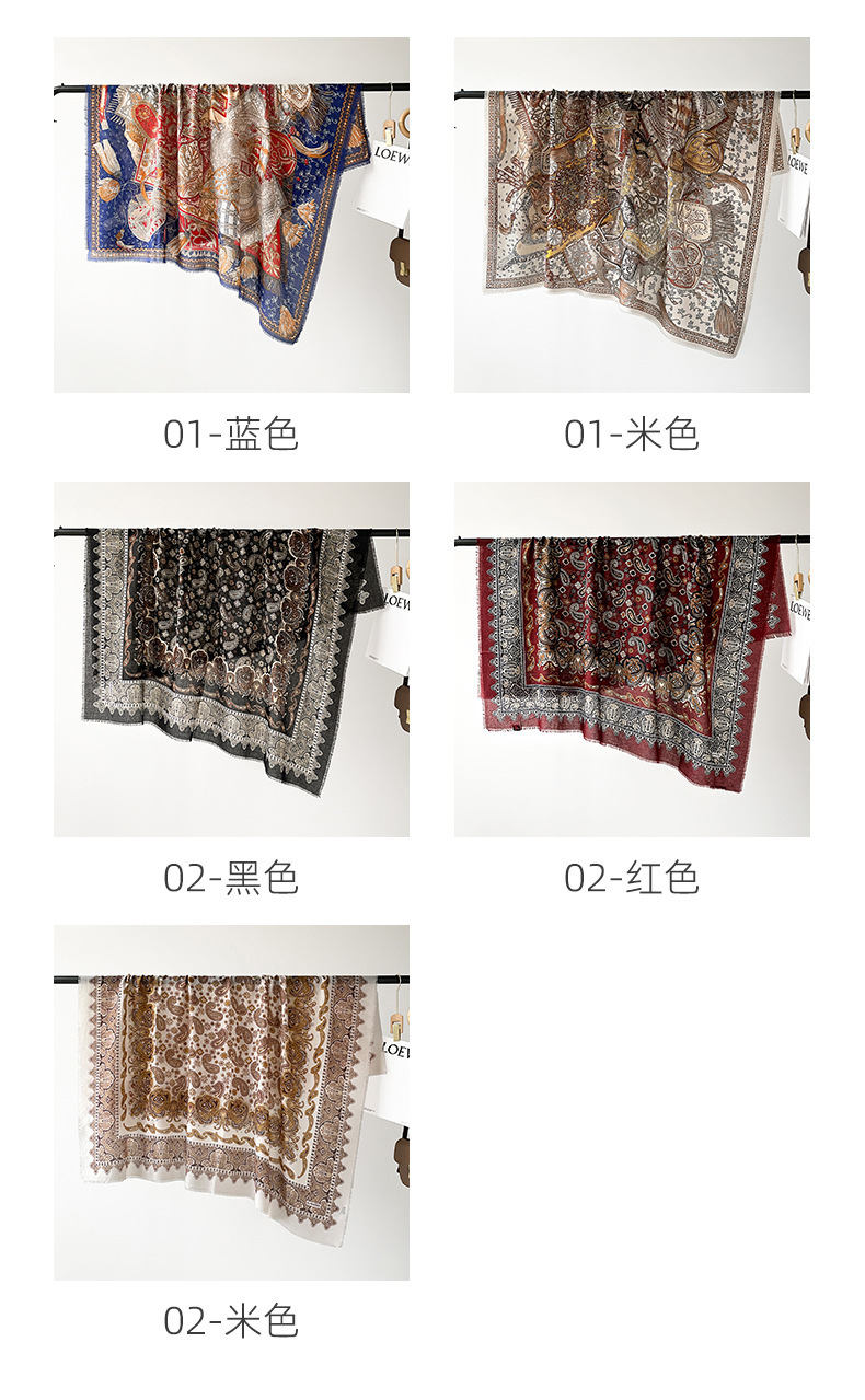 국경 간 봄 새로운 모조 면 및 린넨 대형 스퀘어 스카프 고급 실크 스카프 여성 복고풍 패션 블랙 캐슈 인쇄 스카프스토어 가기