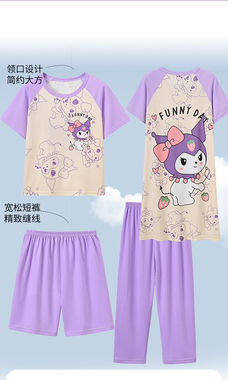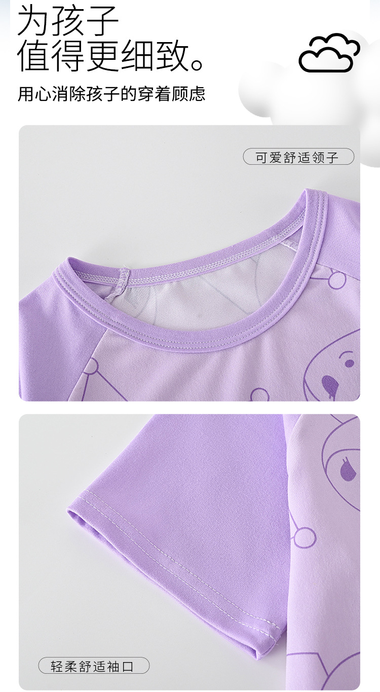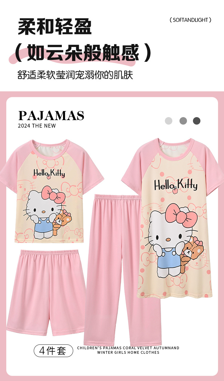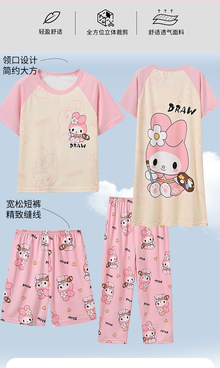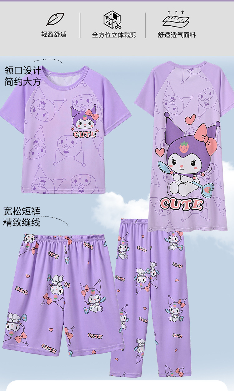 4 조각 소녀 잠옷 2025 만화 새 도착 쿨로 미 여름 얇은 반팔 세트 중대형 어린이 가정 옷