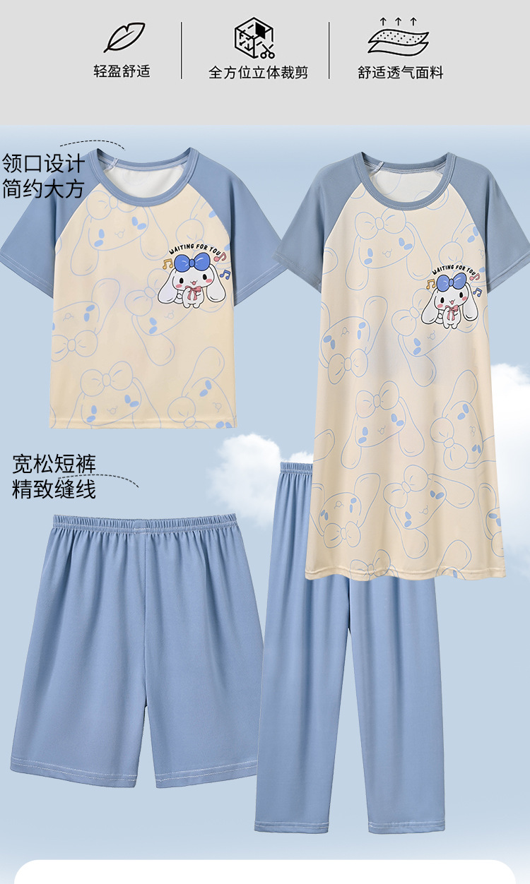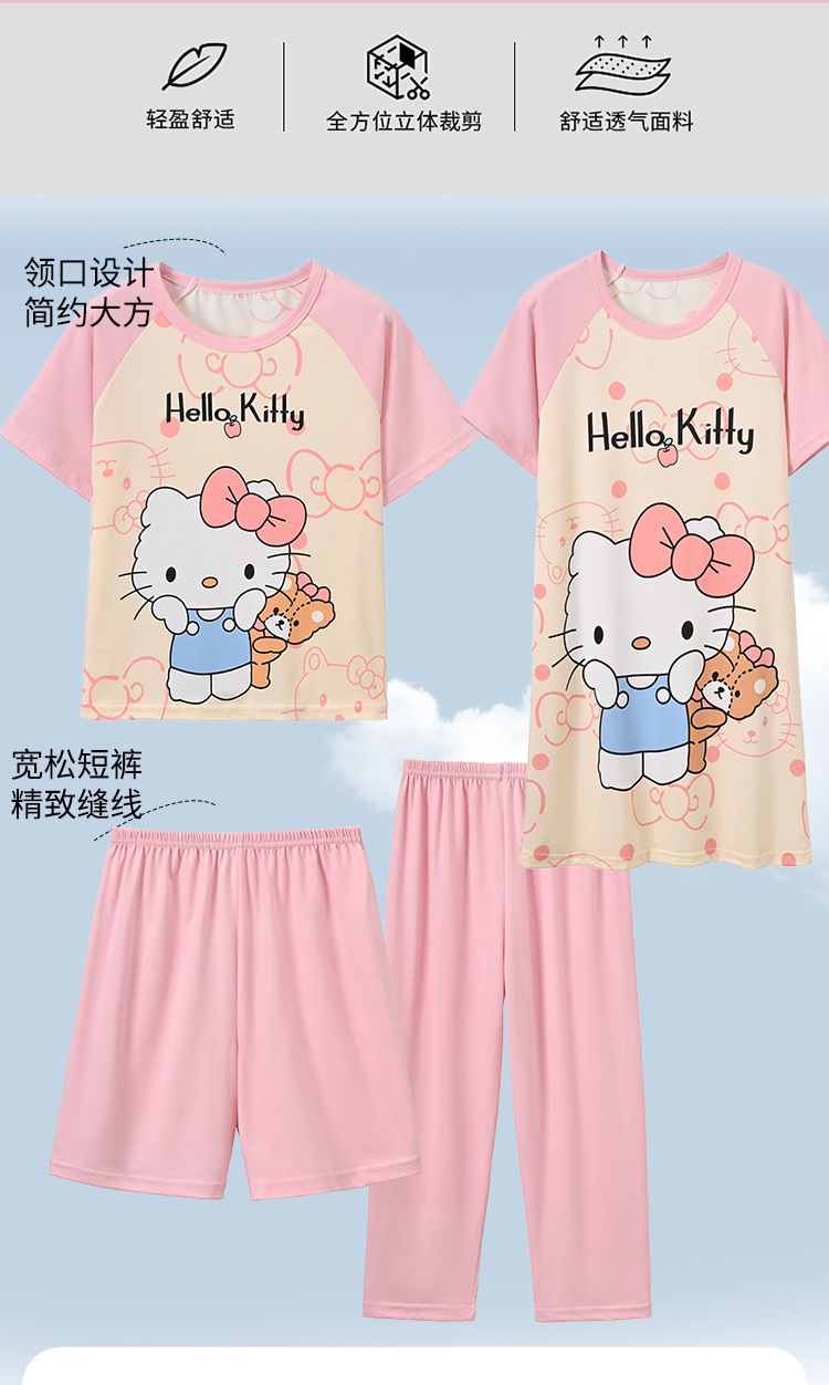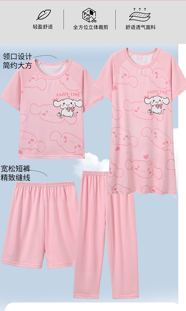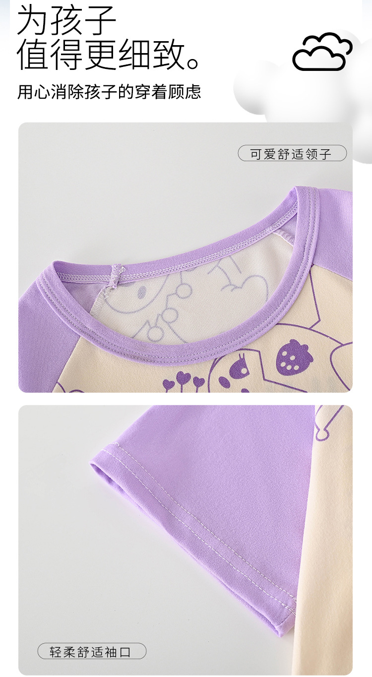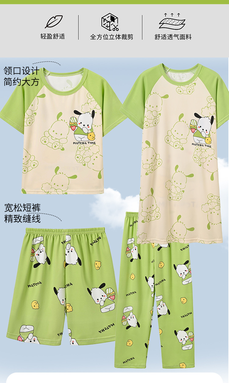 4 조각 소녀 잠옷 2025 만화 새 도착 쿨로 미 여름 얇은 반팔 세트 중대형 어린이 가정 옷