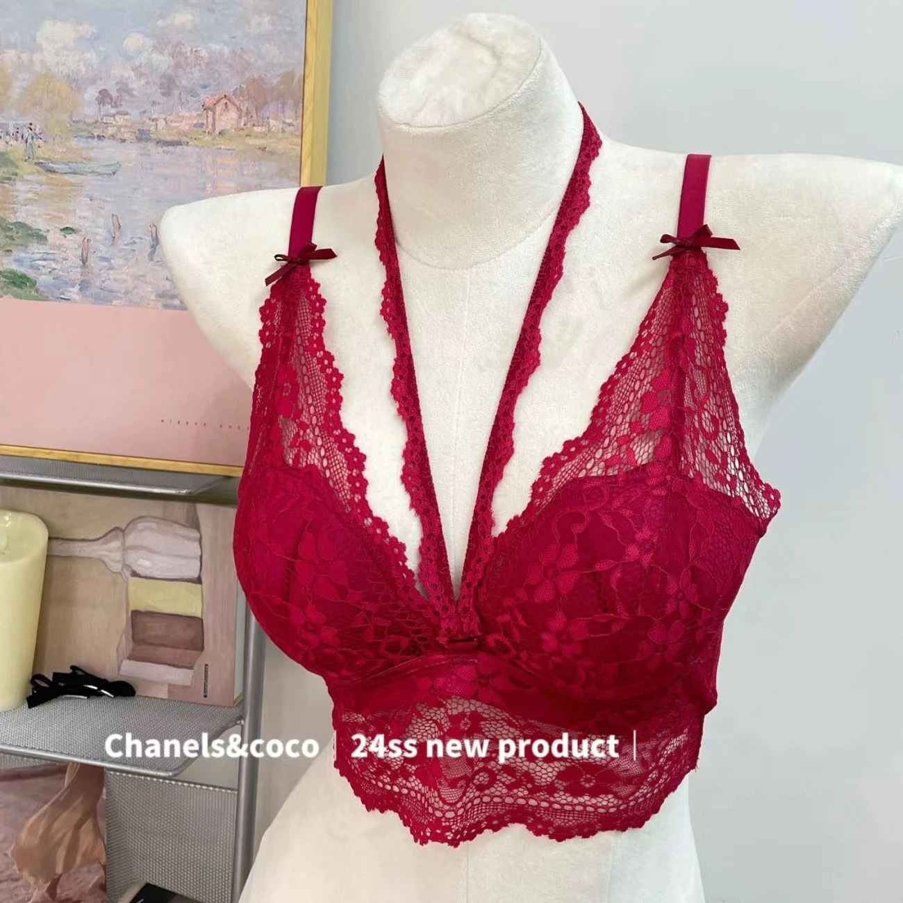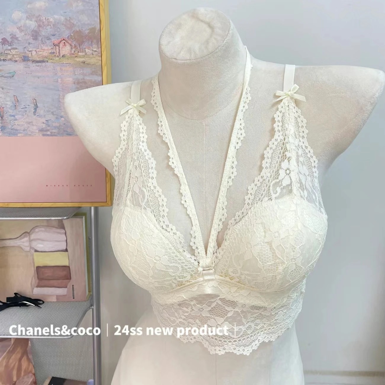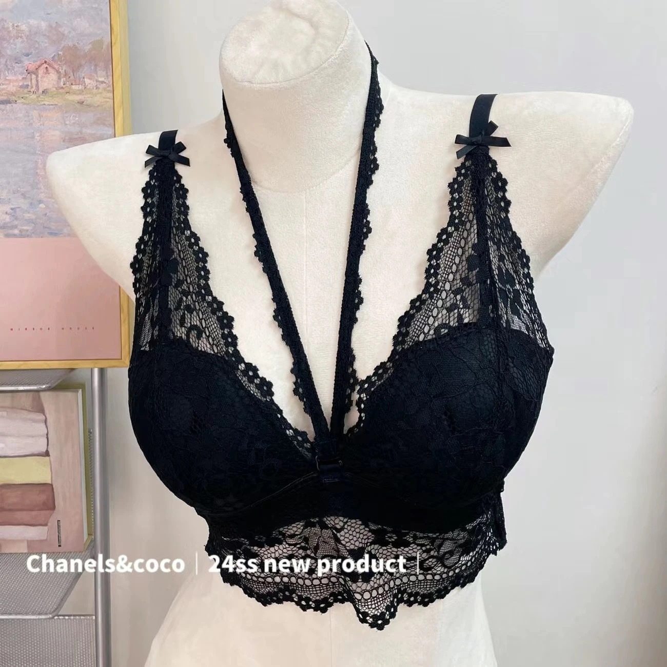 작은 가슴 푸쉬 업 속옷 여성용 스틸 링 세련된 목 퓨어 프렌치 스타일 레이스 섹시 스택 슬링 브래지어스토어 가기