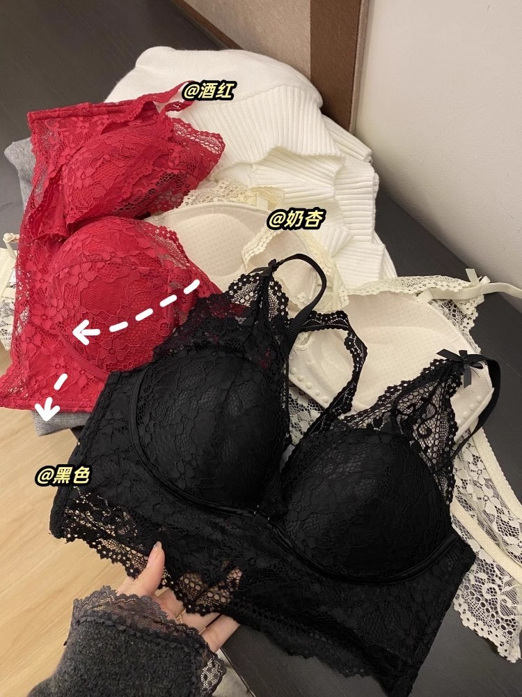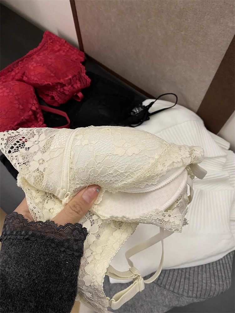 작은 가슴 푸쉬 업 속옷 여성용 스틸 링 세련된 목 퓨어 프렌치 스타일 레이스 섹시 스택 슬링 브래지어