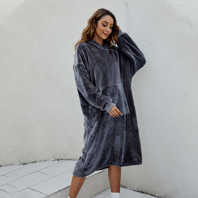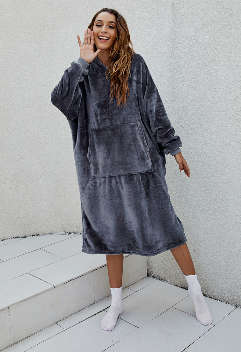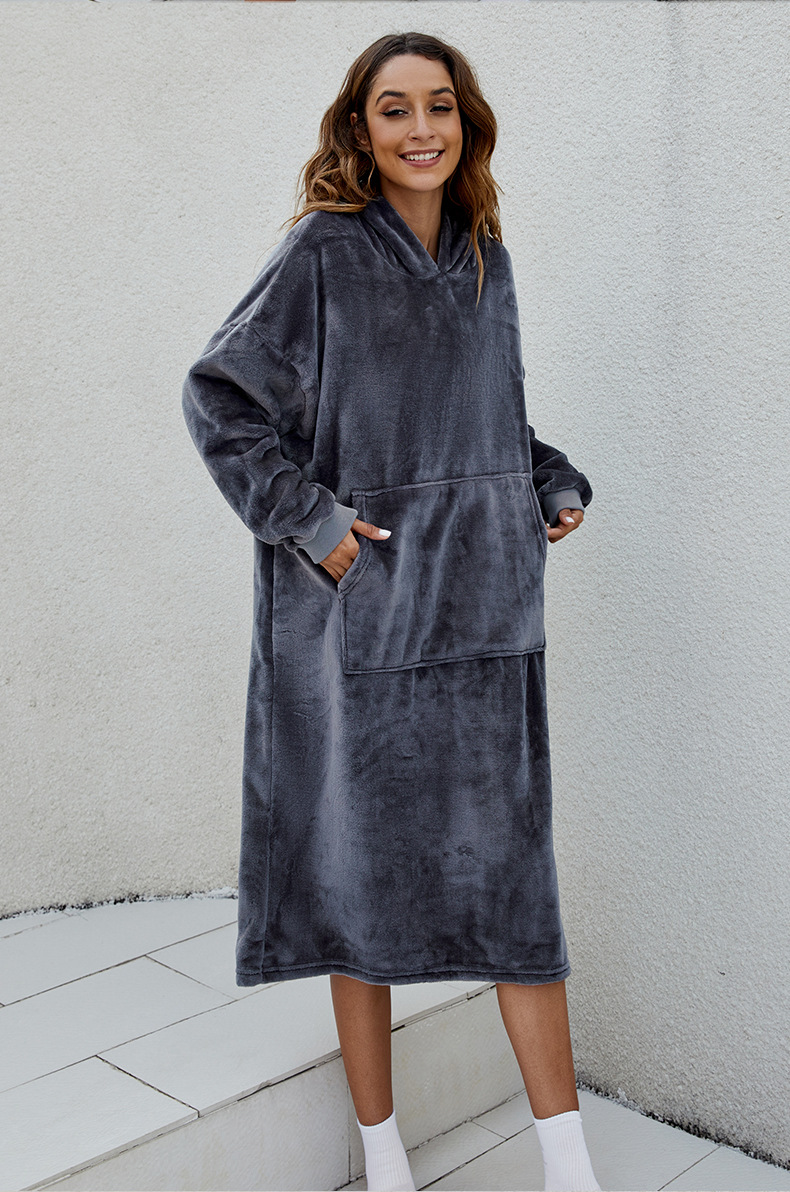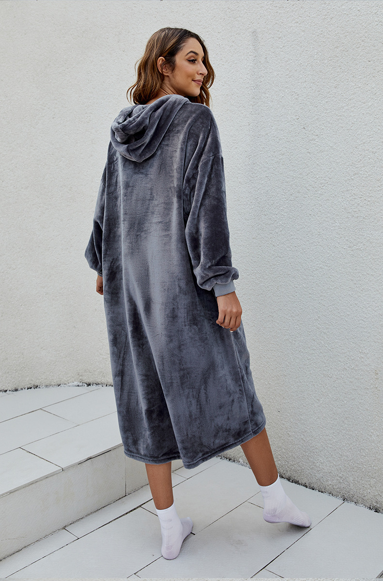 D60 긴팔 얇은 단층 후드 플란넬, 무릎 아래까지 길이가 긴 홈 라지 블랭킷, 성인용 유럽 및 미국 남성용 및 여성용 잠옷