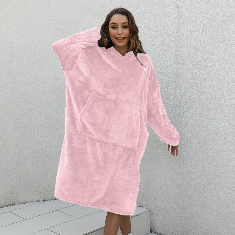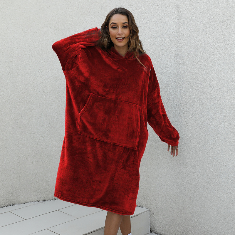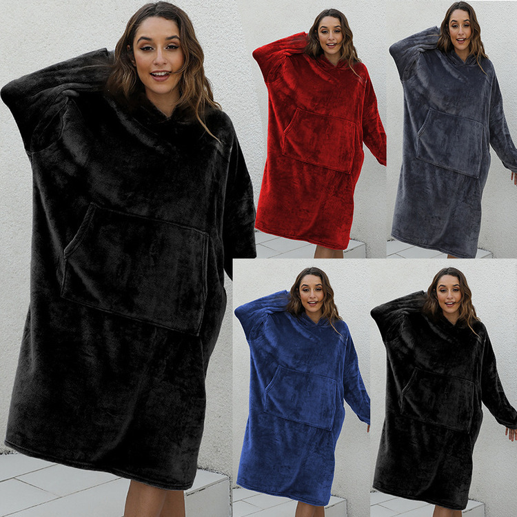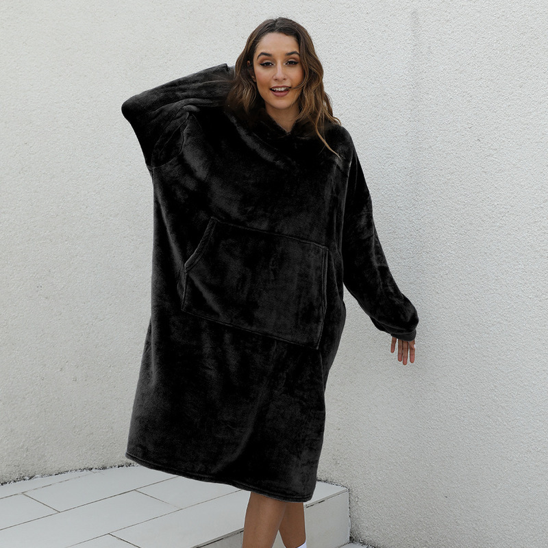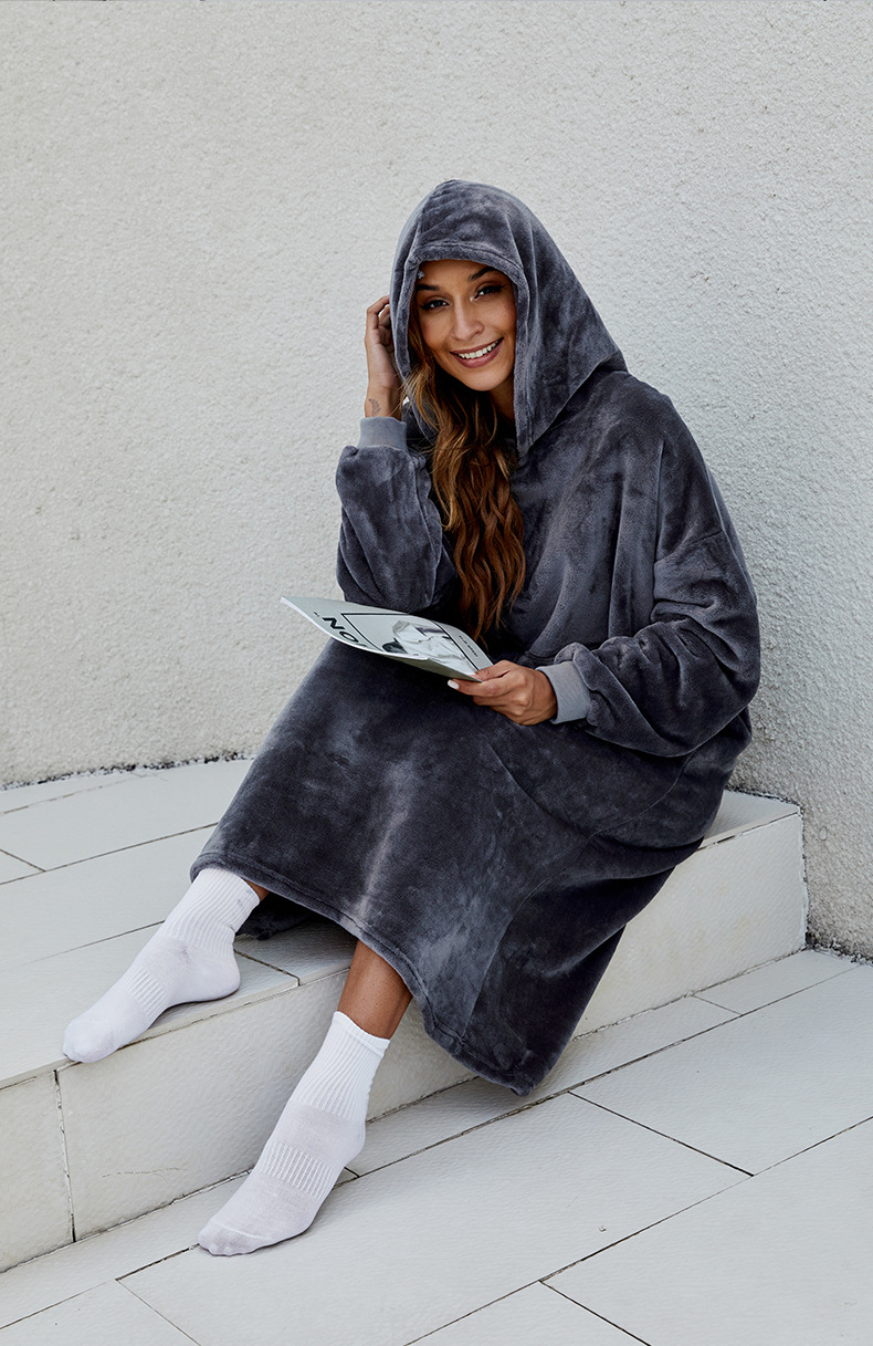 D60 긴팔 얇은 단층 후드 플란넬, 무릎 아래까지 길이가 긴 홈 라지 블랭킷, 성인용 유럽 및 미국 남성용 및 여성용 잠옷