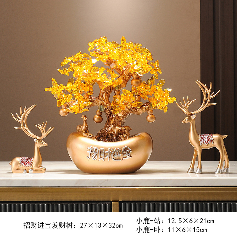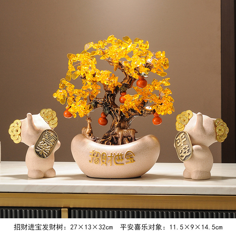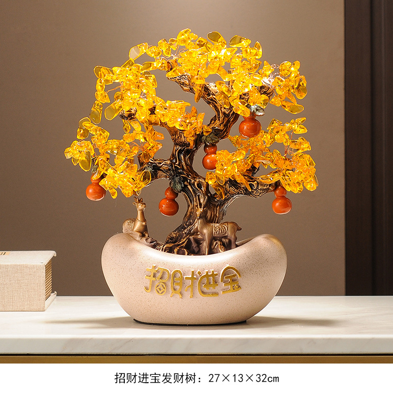 포춘 트리 머니 트리 골드 잉곳 새로운 중국 장식품 사무실 프론트 데스크 와인 캐비닛 장식 집들이 오프닝 왕 샤오 샹