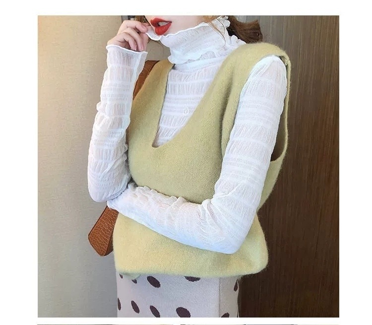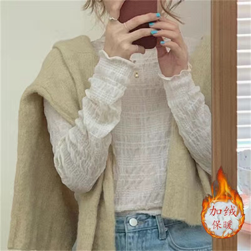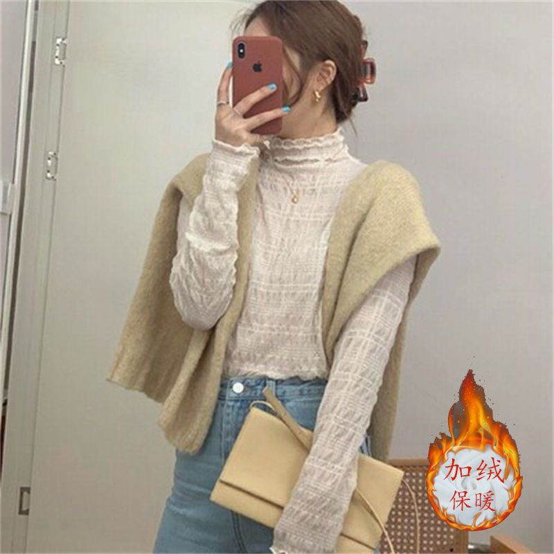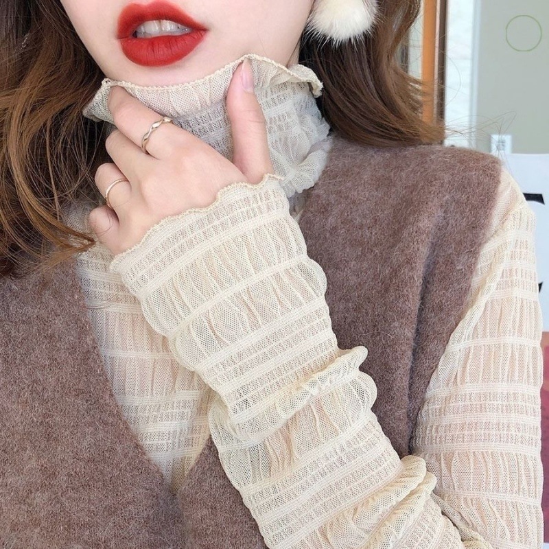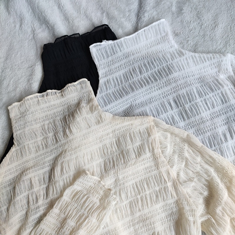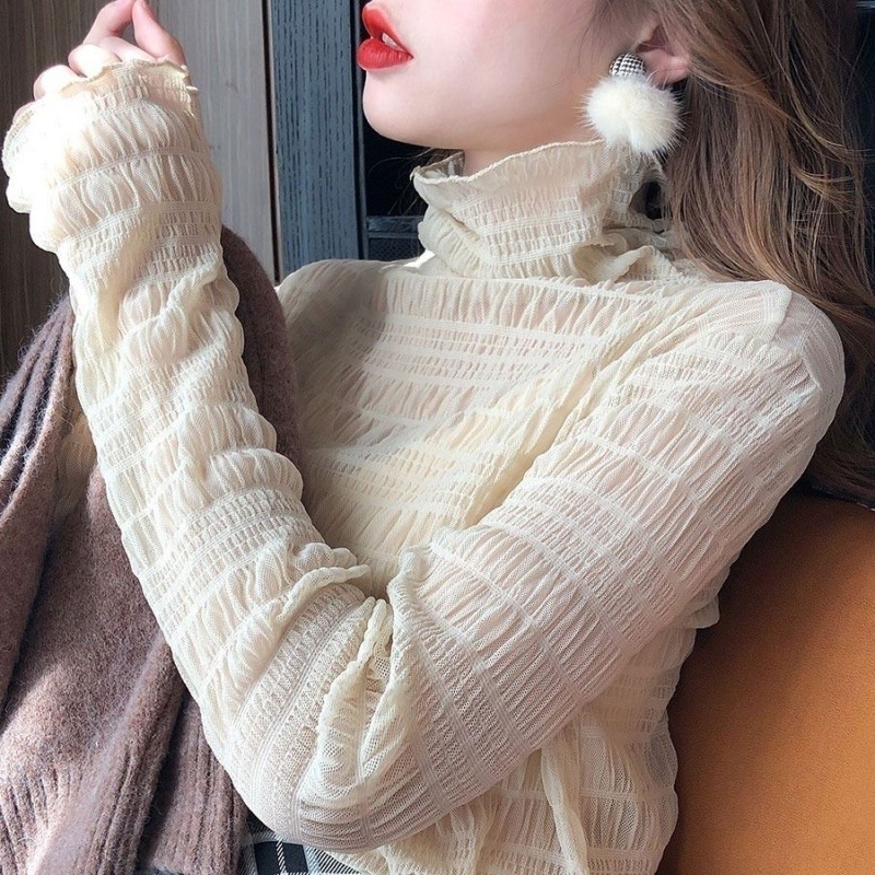 레이스베이스 셔츠 여성용 긴 소매 새로운 내부 높은 목 우아한 슬림 룩 쉬폰 셔츠 메쉬 최고 유행 작은 셔츠스토어 가기