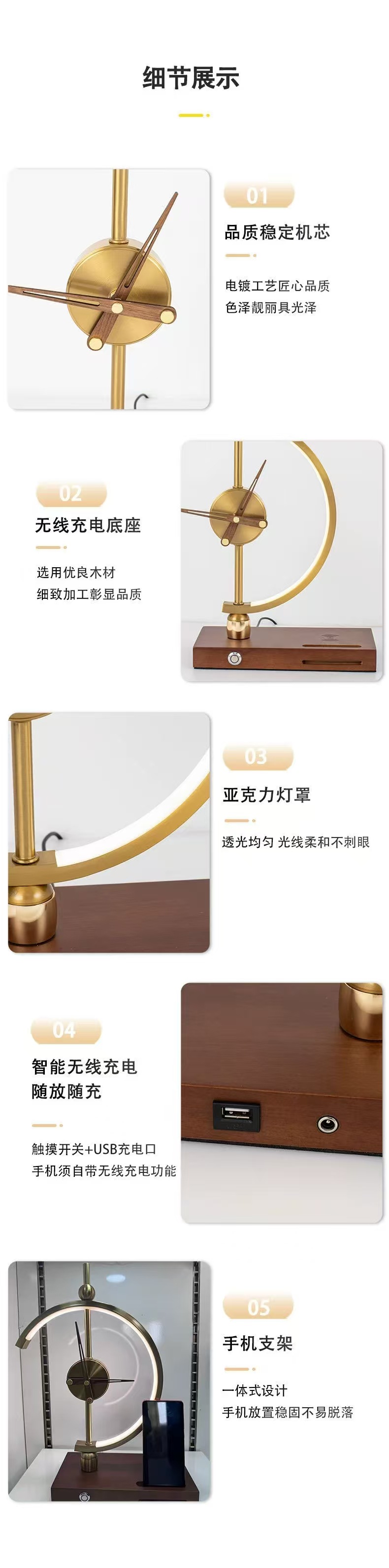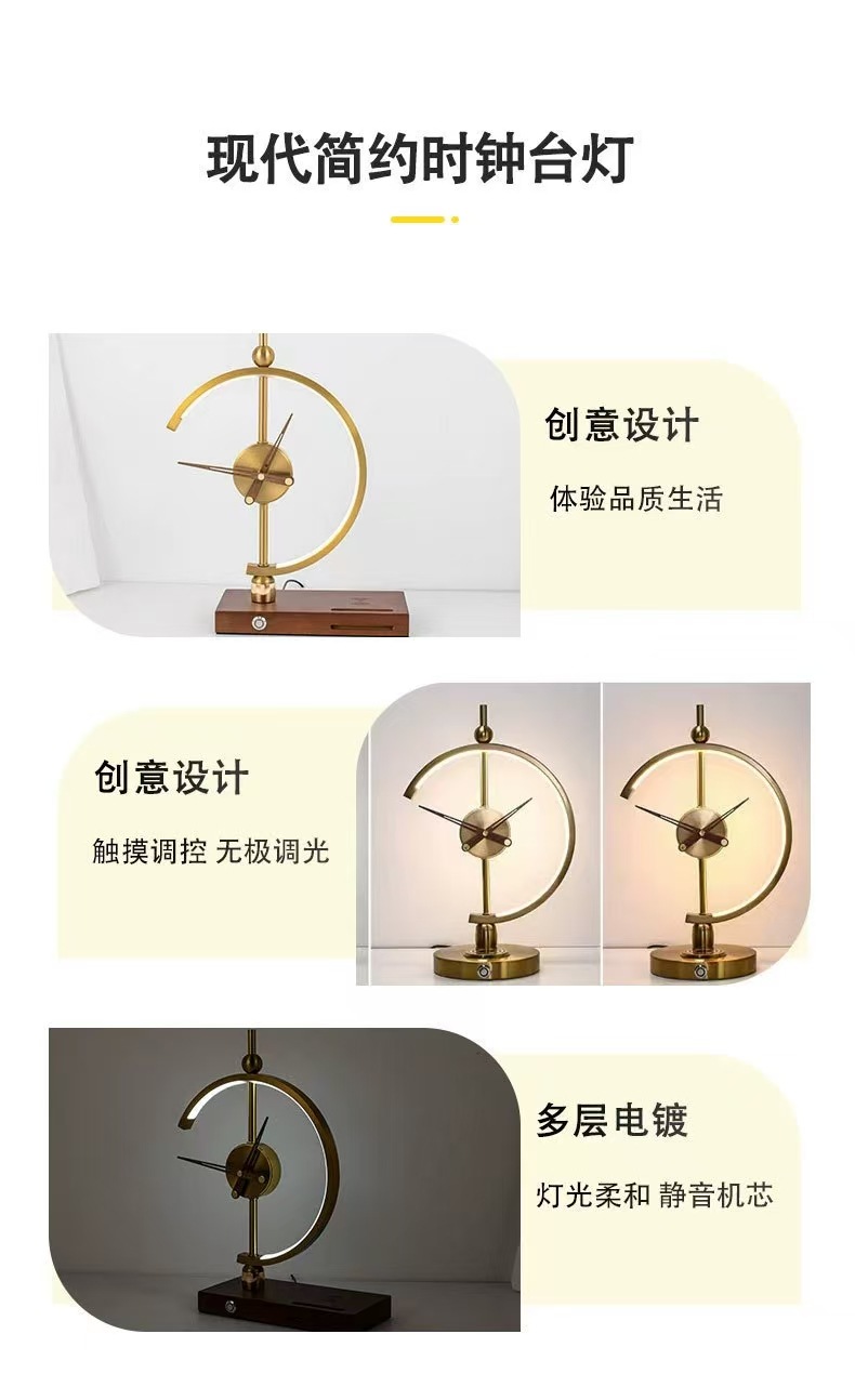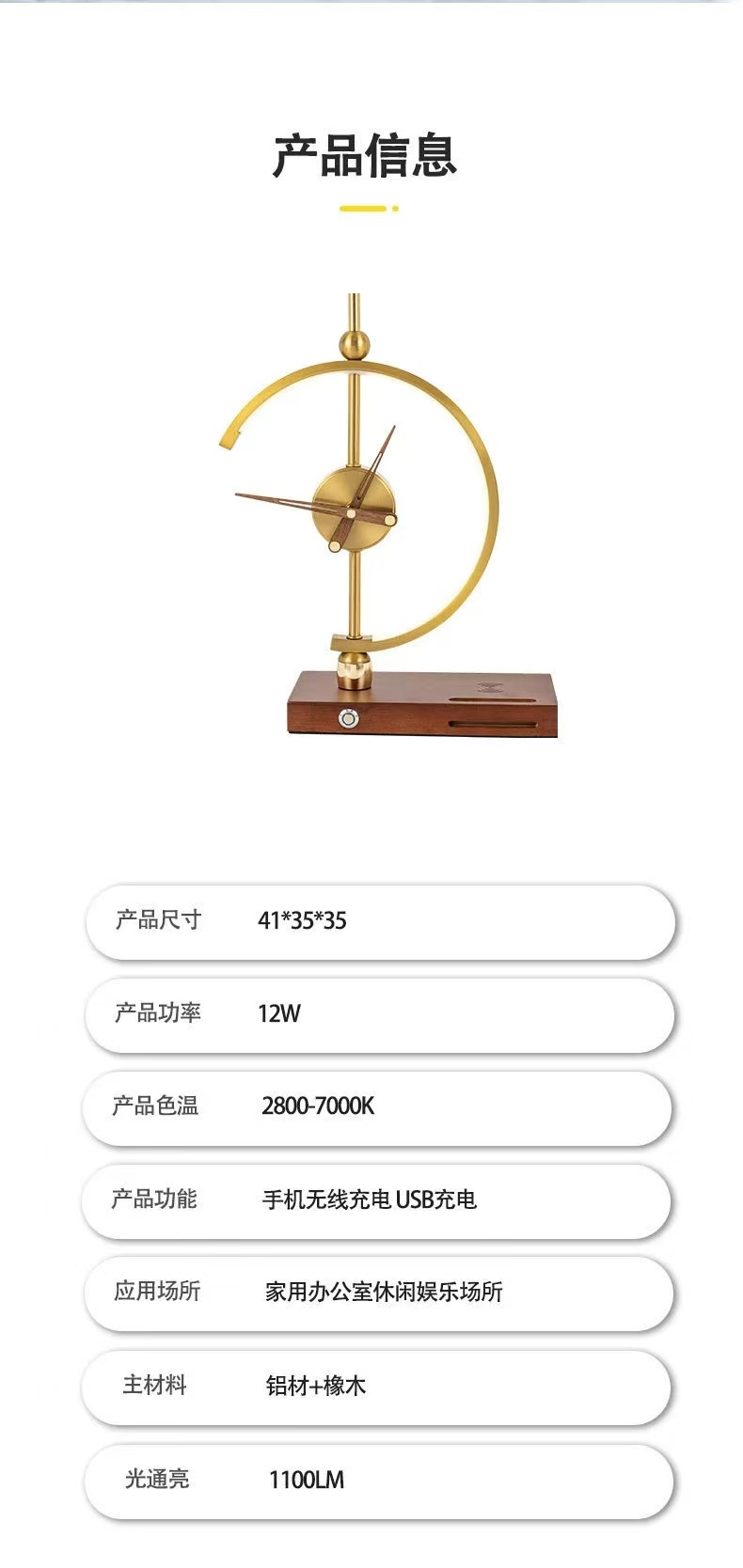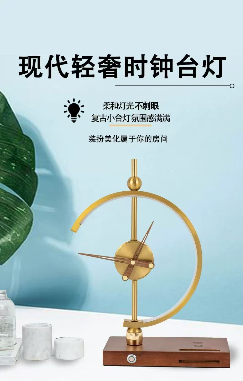 국경 간 뜨거운 판매 현대 빛 럭셔리 창조적 인 시계 테이블 램프 디밍 스마트 충전 데스크탑 장식품 선물