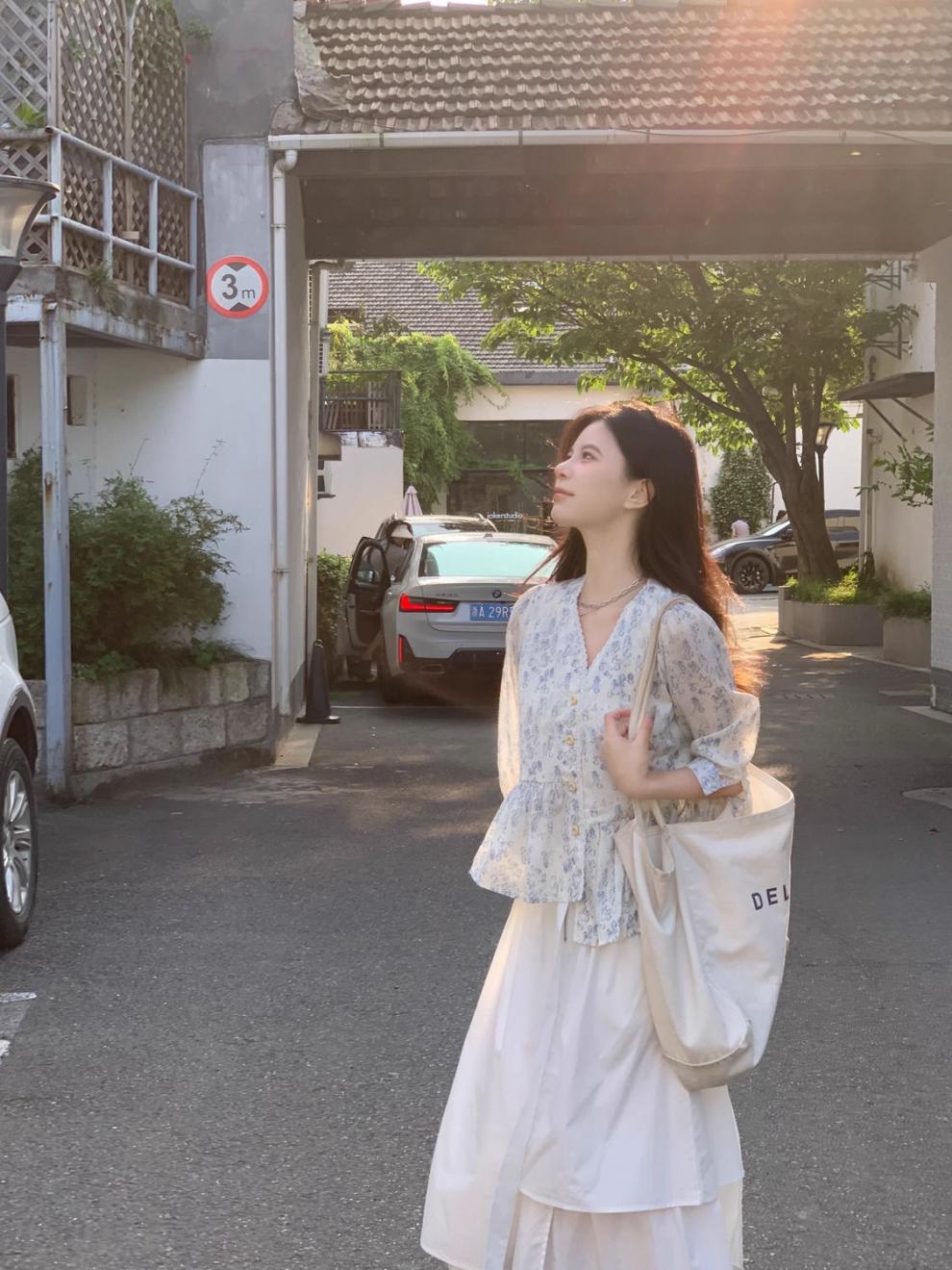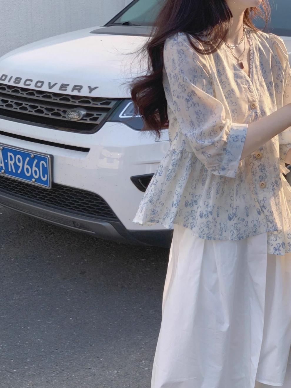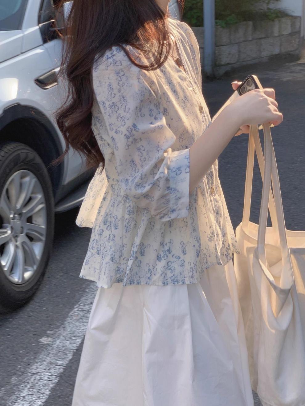 프렌치 플로럴 데일리룩 카라티 셔츠 7부 소매 쉬폰 블라우스 여성 가을 디자인 감각있는 루즈핏 슬림핏 상의 여성 만능 코디
