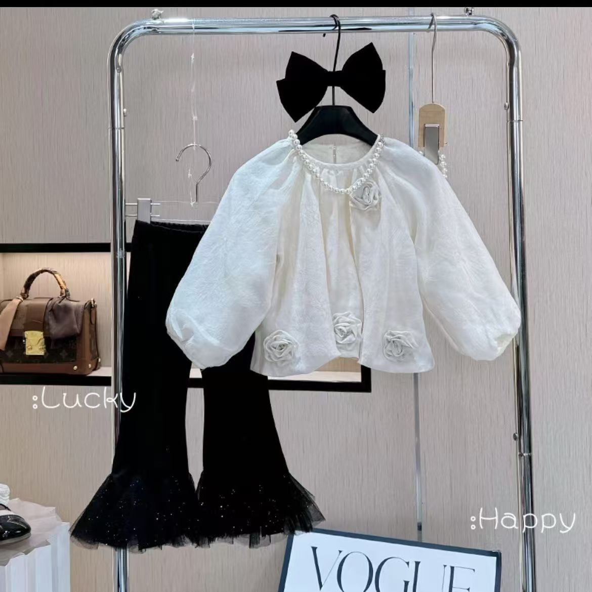 여아 가을 의류 세트 2025 신상 긴팔 패셔너블한 소녀 스타일 마이크로 플레어 팬츠 여아 봄 가을 의류스토어 가기