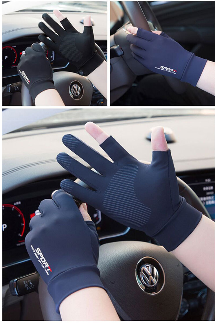 운전자 남성 운전 장갑 얇은 선 스크린 자동차 땀 흡수성 땀 방지 반 손가락 여름 미끄럼 방지 라이딩 여성