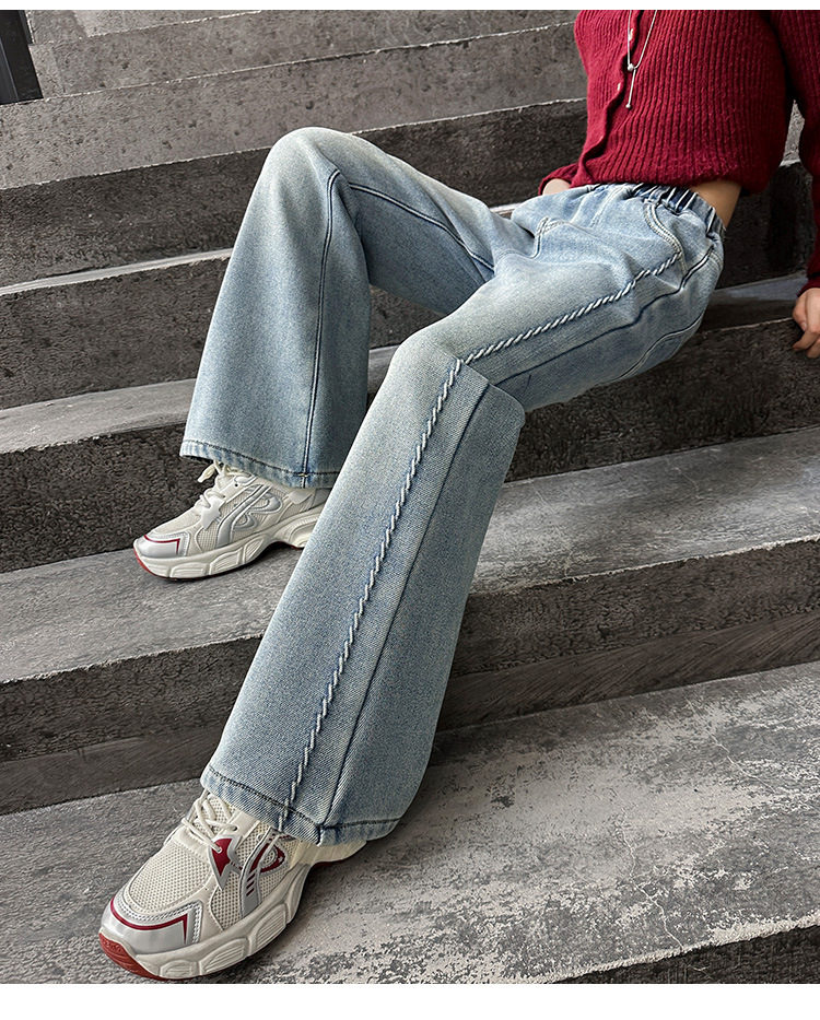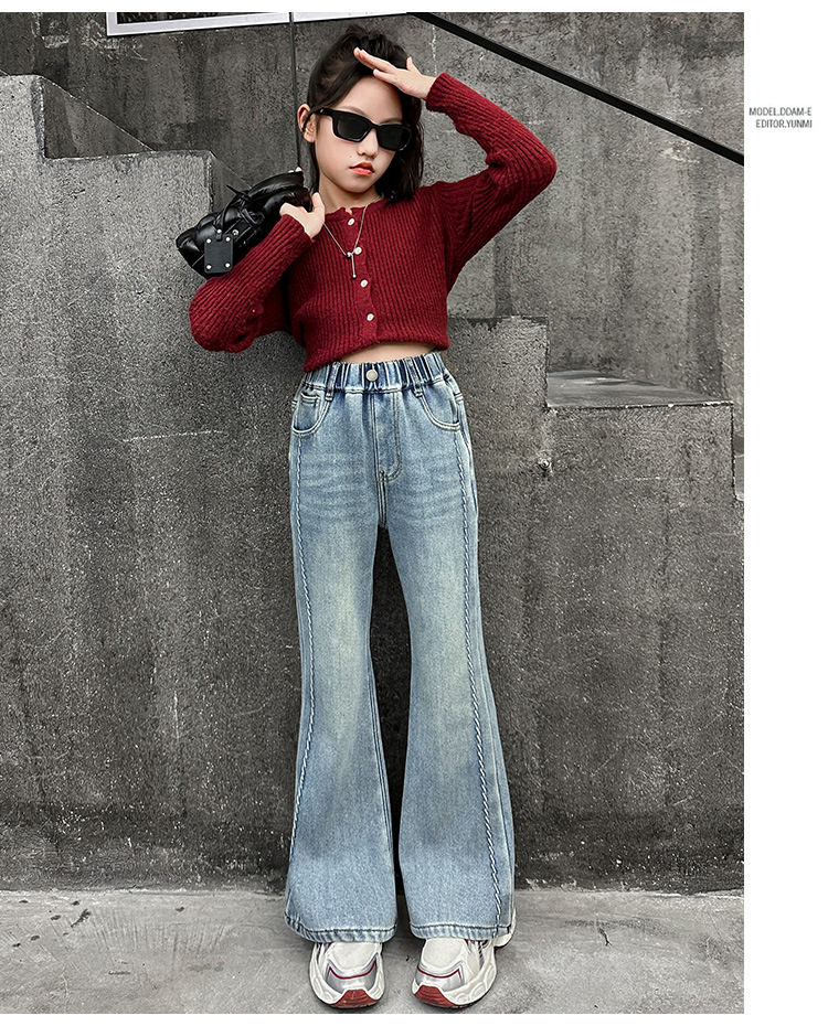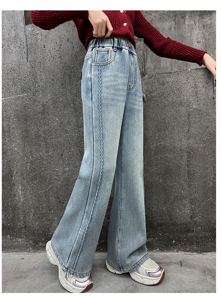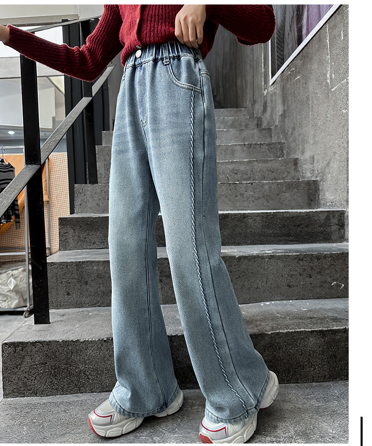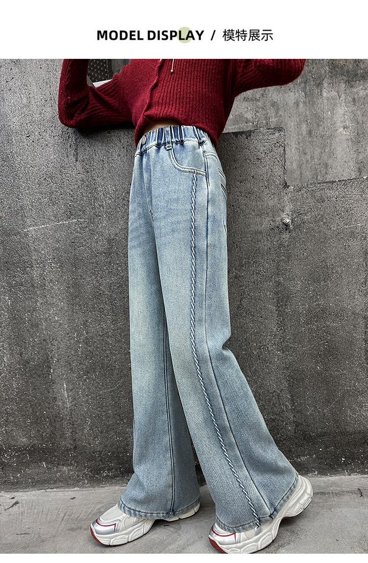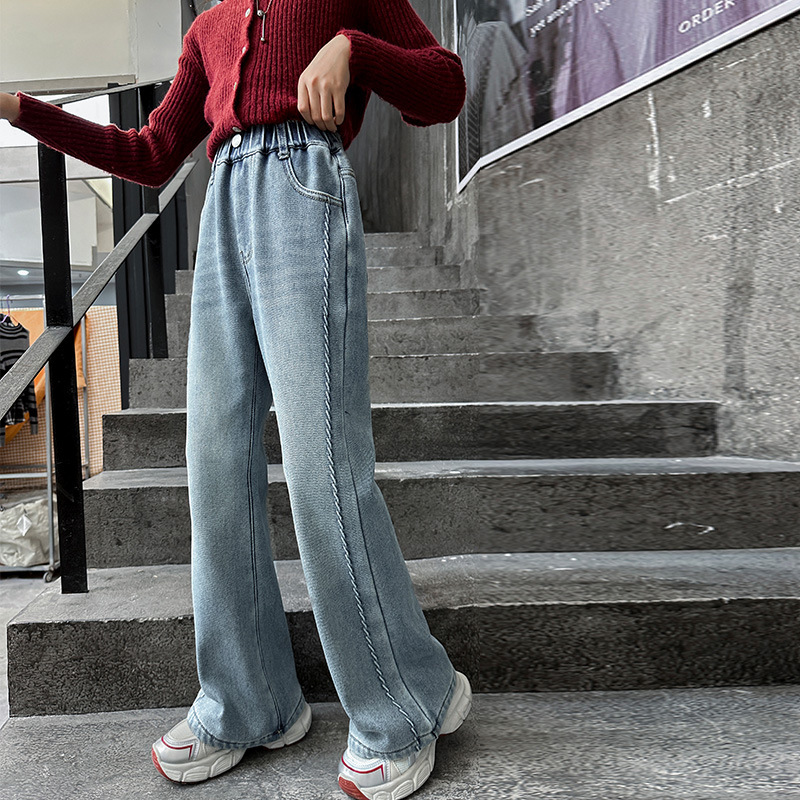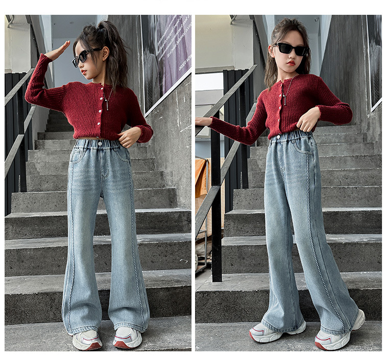 국경 간 소녀 청바지 봄과 가을 서양식 바지 유행 인터넷-유명한 넓은 다리 바지 어린이 바지 봄 착용 중형 및 대형 어린이 바지스토어 가기
