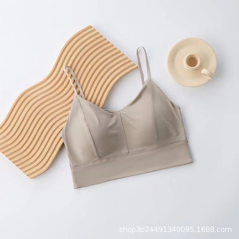 2221 아이스 실크 스틸 링 고정 컵 튜브 탑 올 매치 안티 라이트 작은 조끼가없는 원활한 아름다운 백 튜브 탑 얇은 벨트스토어 가기