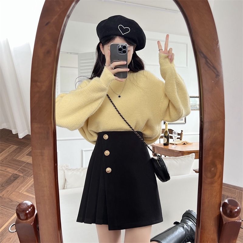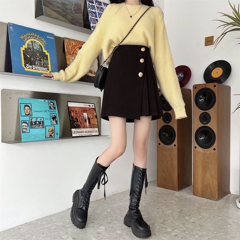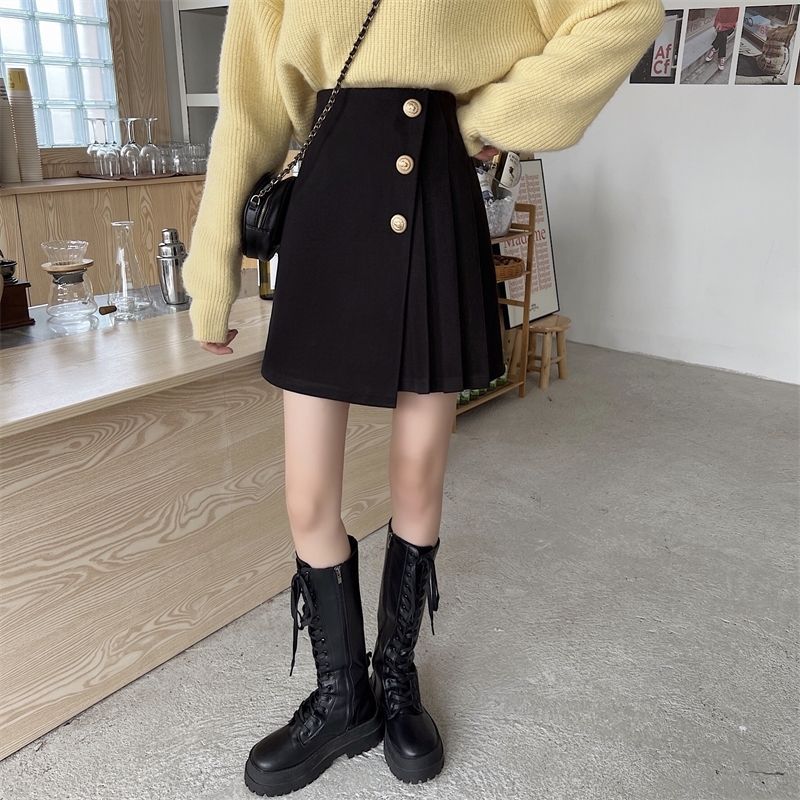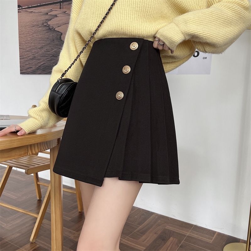 치마 여성의 봄과 가을 여름 짧은 치마 높은 허리 슬리밍 A 라인 스커트 불규칙한 한 단계 스커트 새로운 주름 치마