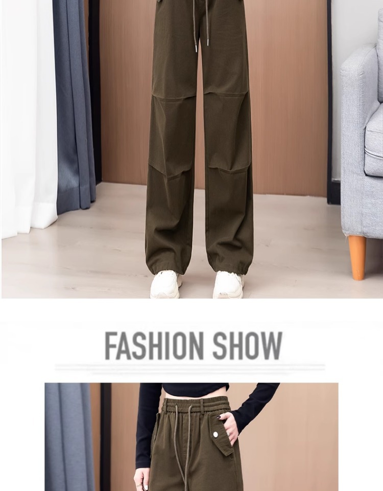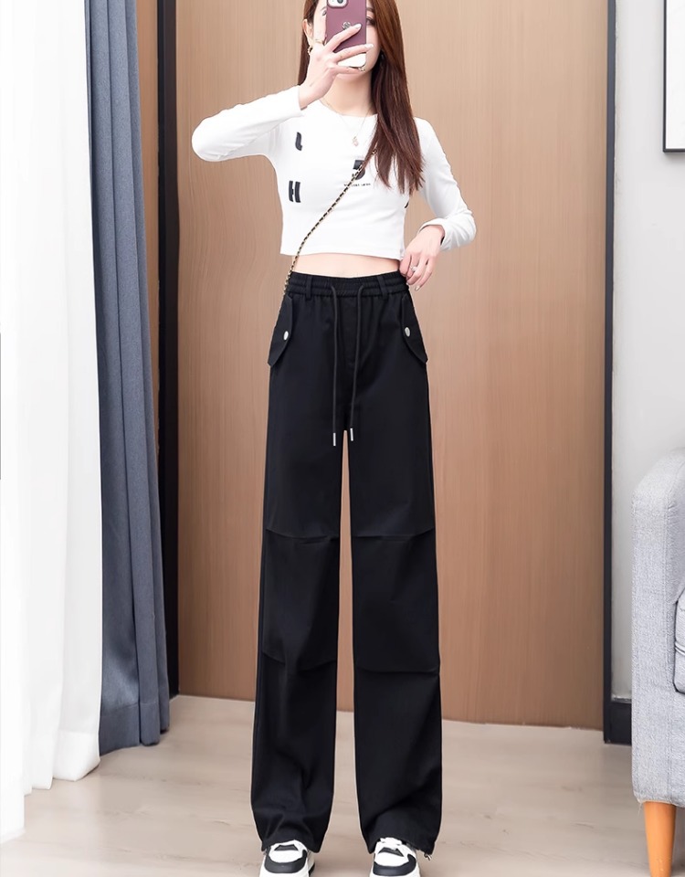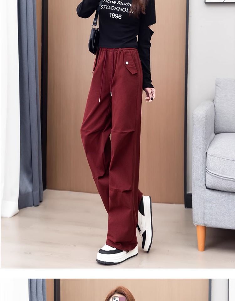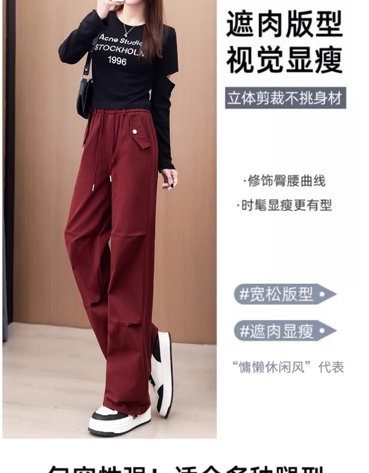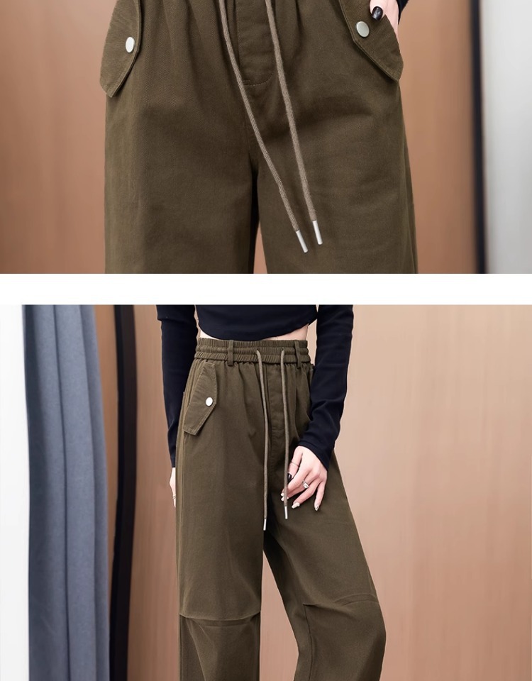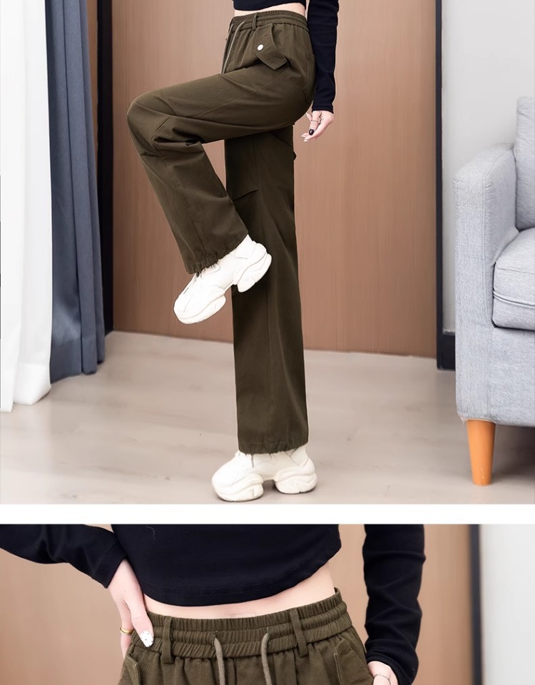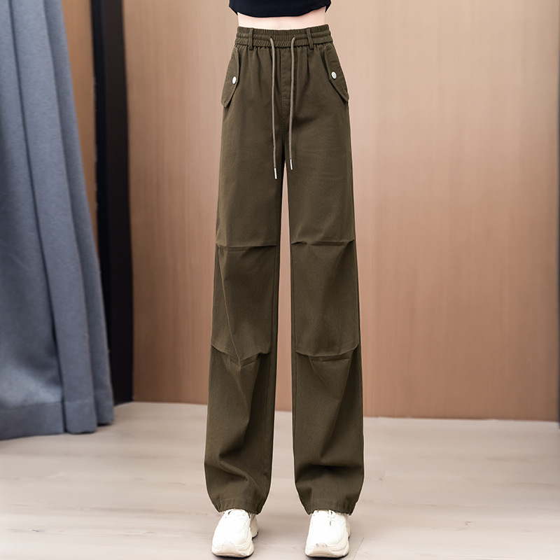 크록 바지 여자 2025 봄 새로운 스타일 작은 높은 허리 미국 직선 좁은 판 스포츠 캐주얼 등산 넓은 다리 바지스토어 가기