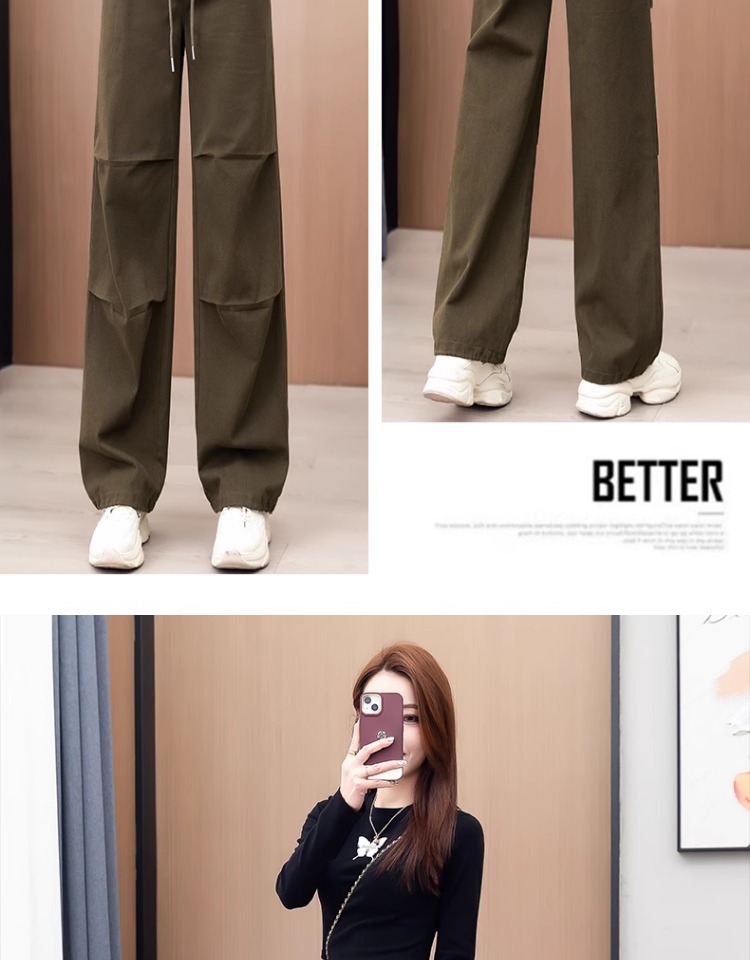 工装裤女2025春季新款小个子高腰美式直筒窄版运动休闲登山阔腿裤