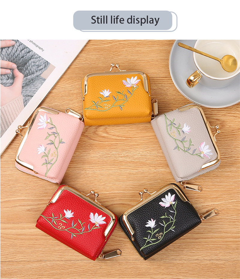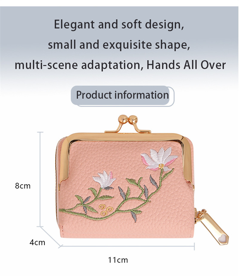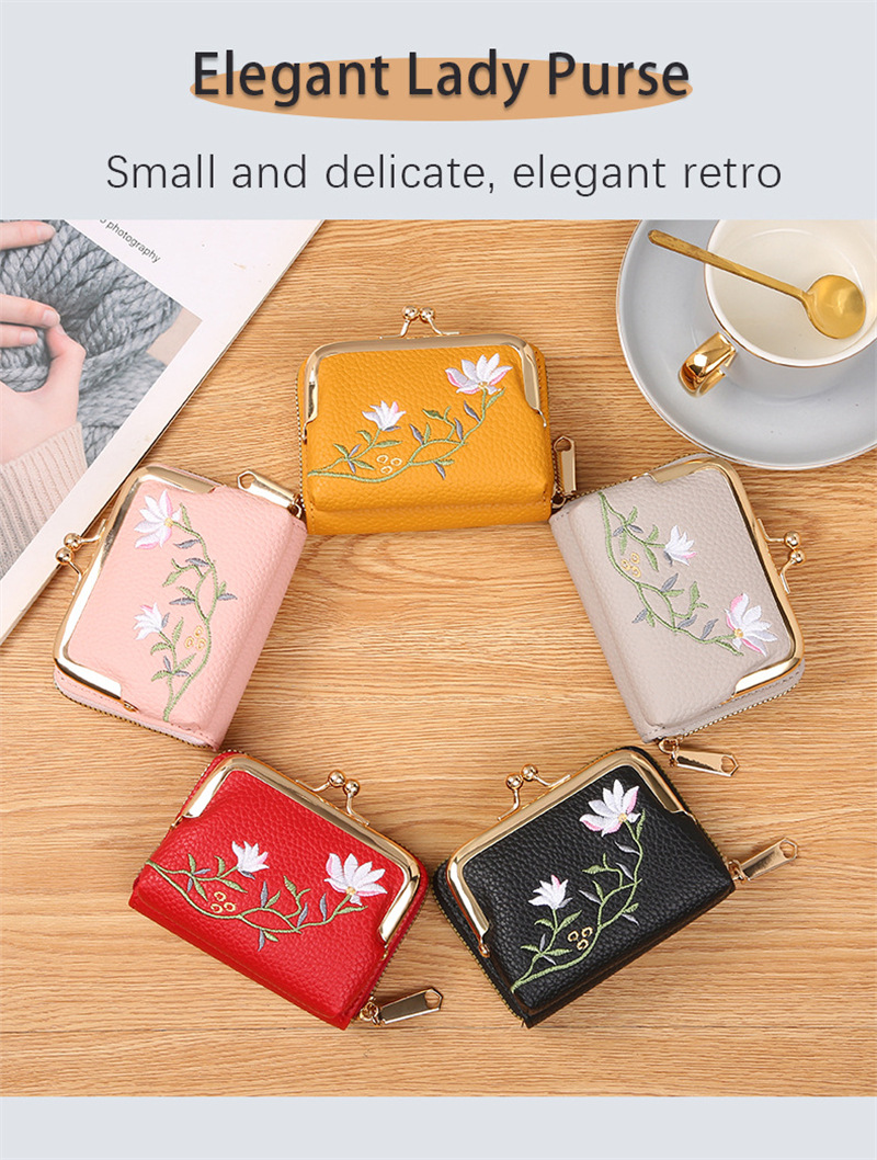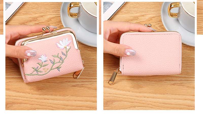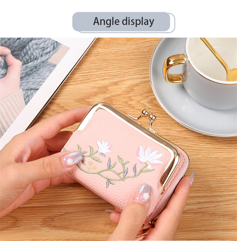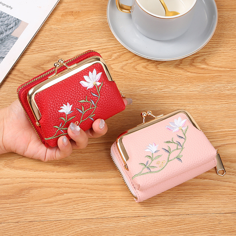 리치 패턴 짧은 동전 지갑 국가 스타일 문학 연꽃 클립 백 멀티 레이어 카드 홀더 동전 가방 작은스토어 가기