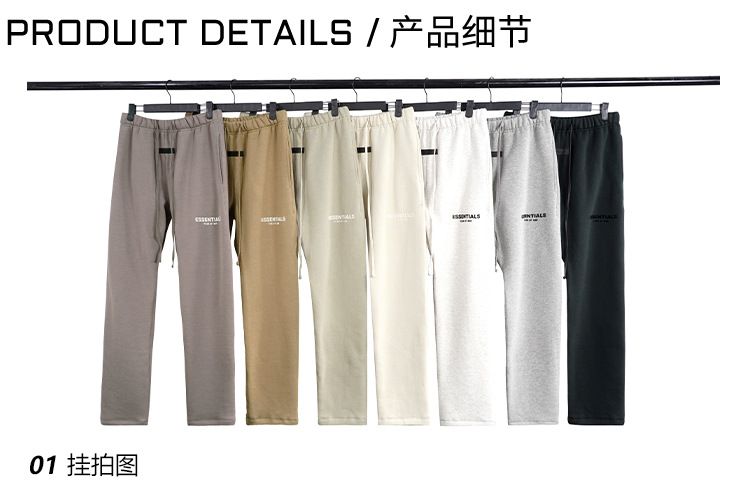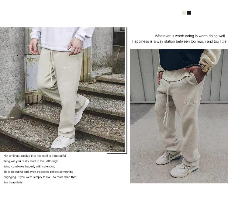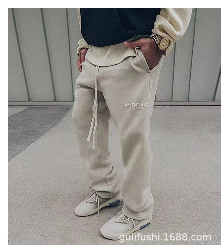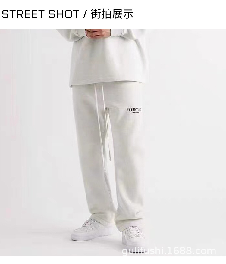 FOG ESSENTIALS 시즌 8 잠금 작은 라벨 스트레이트 바지가 캐주얼 와이드 입면 바지를 그립니다.스토어 가기
