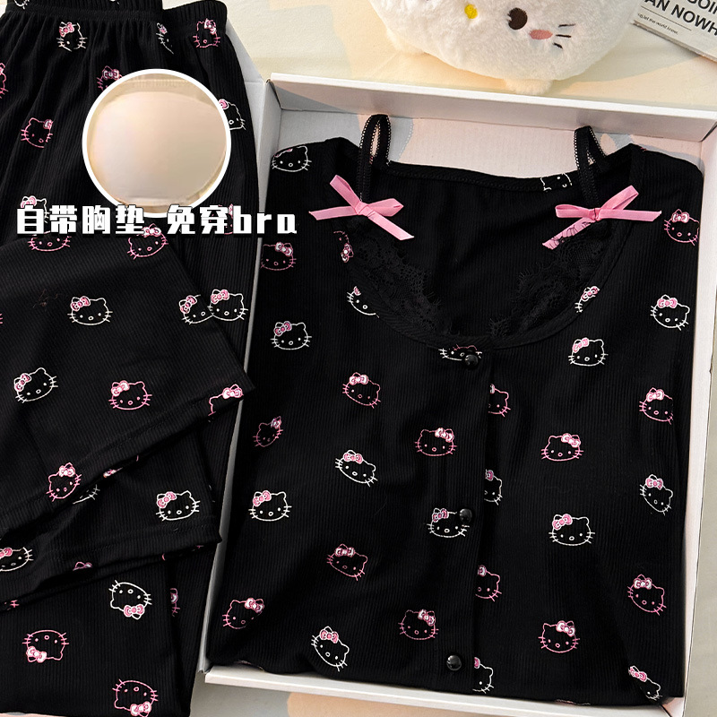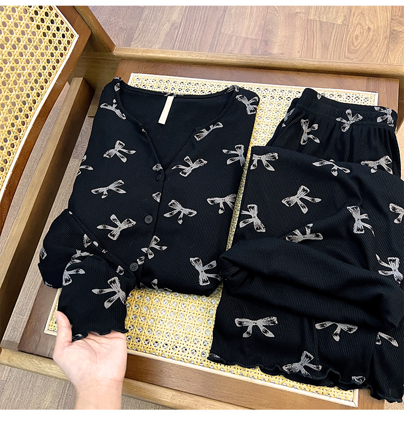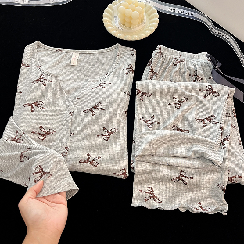 순수한 욕망 활 모달 파자마 여자 가슴 패드 봄 카디건 긴 소매 바지 달콤한 홈 의류 세트스토어 가기