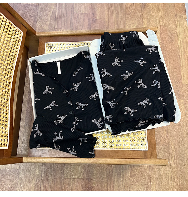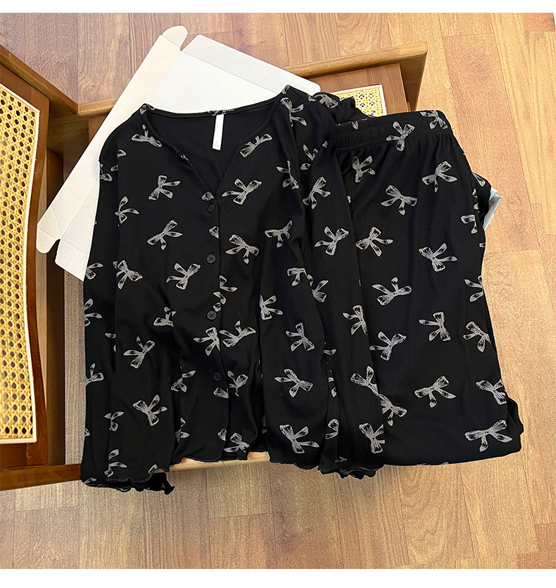 순수한 욕망 활 모달 파자마 여자 가슴 패드 봄 카디건 긴 소매 바지 달콤한 홈 의류 세트