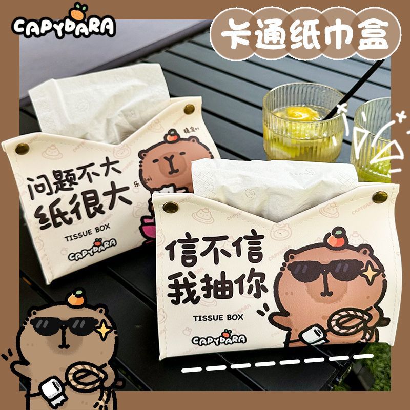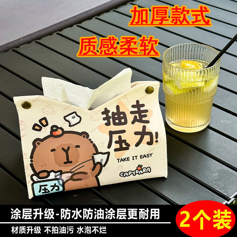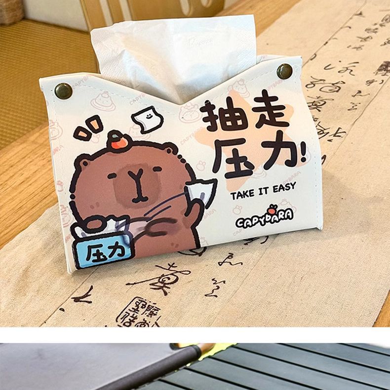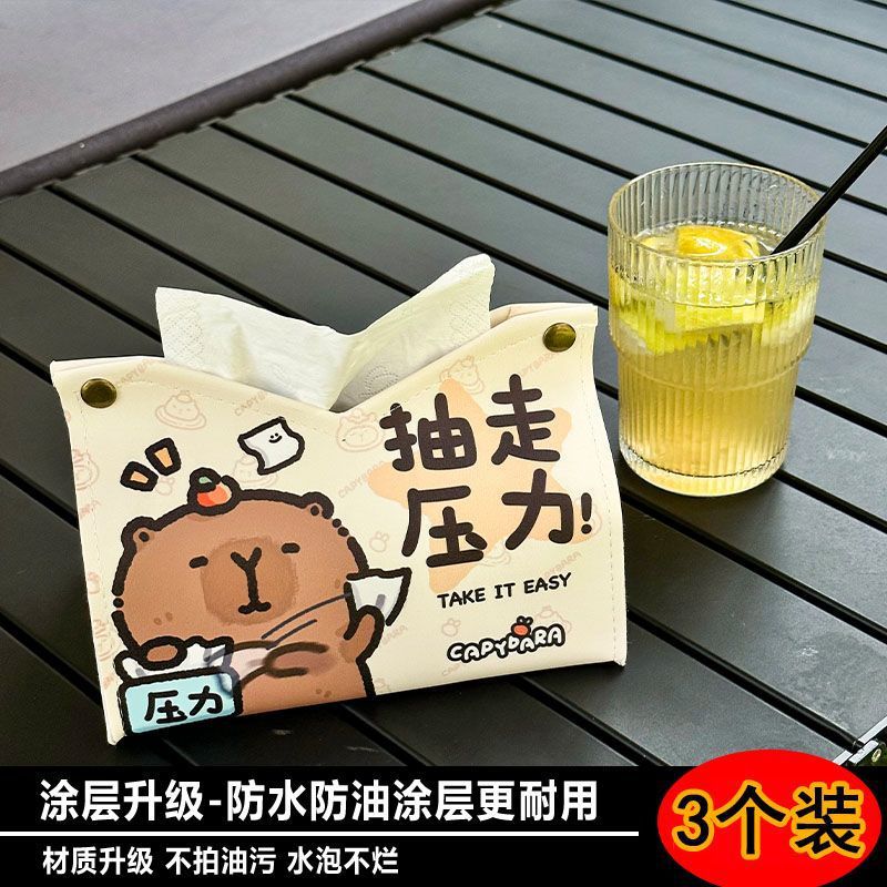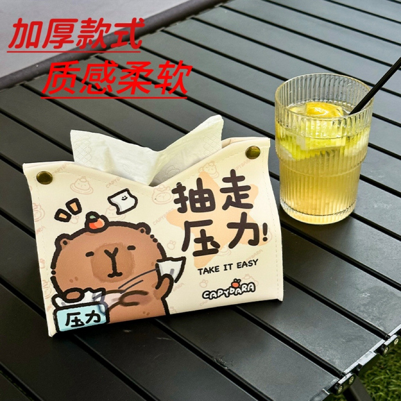 가죽 티슈 박스 창조적 인 귀여운 만화 크림 컬러 커피 테이블 조리대 장식품 종이 상자 냅킨 저장 상자스토어 가기