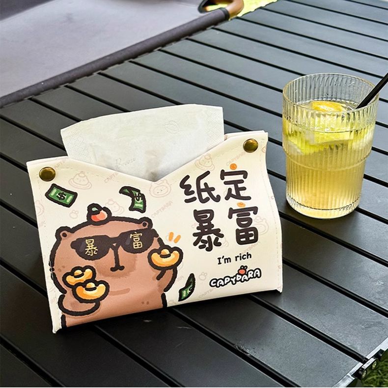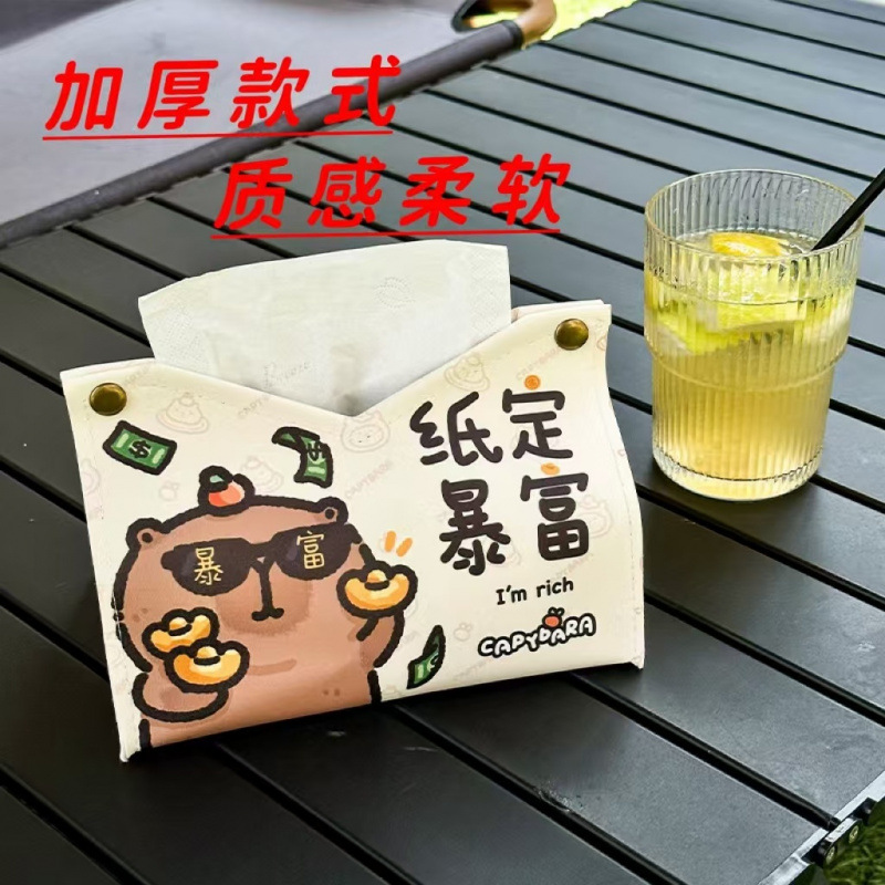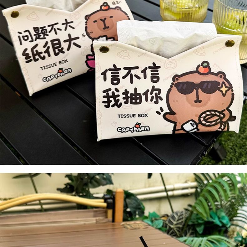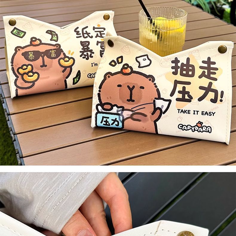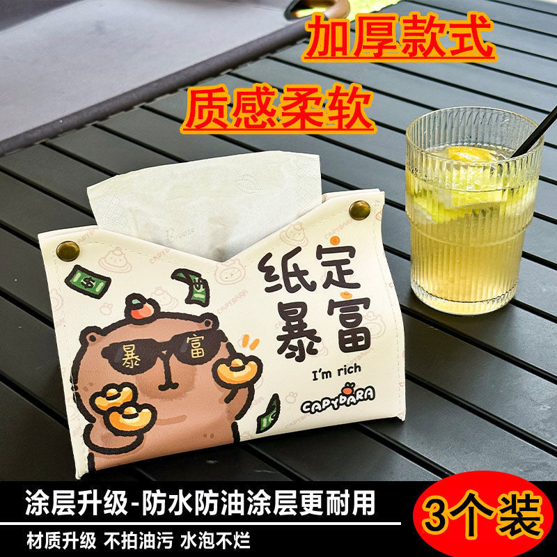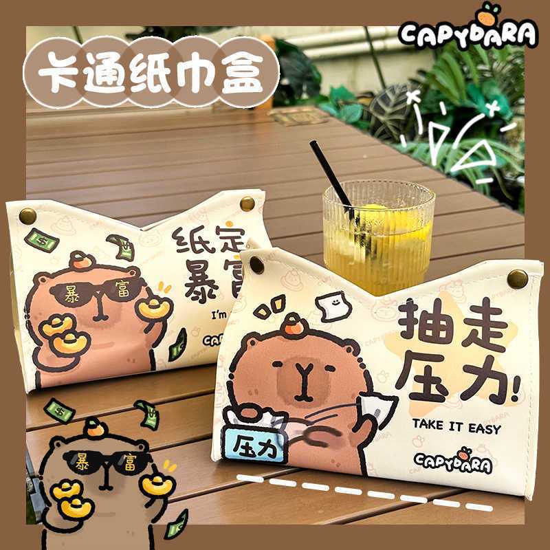 가죽 티슈 박스 창조적 인 귀여운 만화 크림 컬러 커피 테이블 조리대 장식품 종이 상자 냅킨 저장 상자스토어 가기