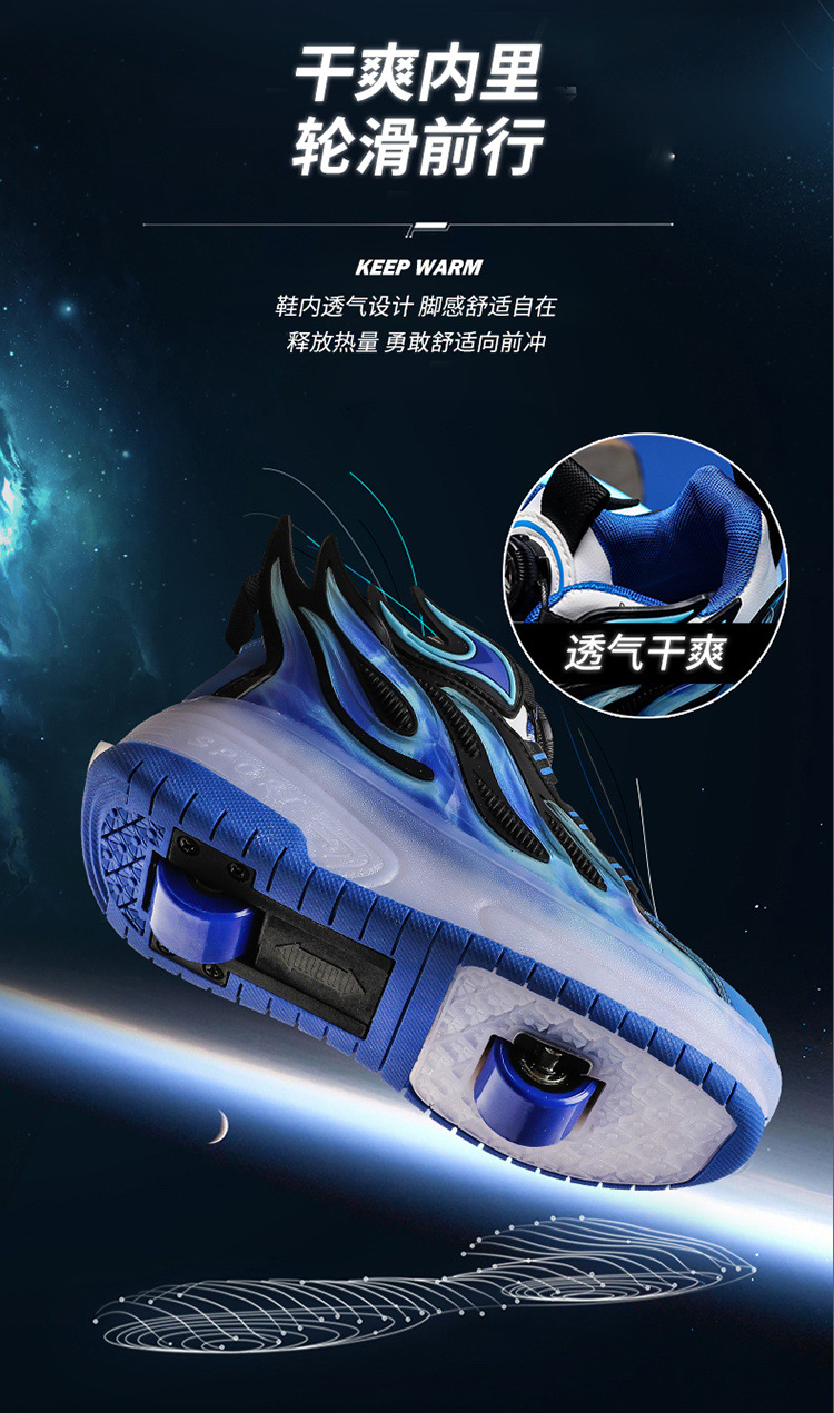 • 플레임 블루 [업그레이드 버전] 롤러 스케이트를 타고 깨울 수 있습니다.