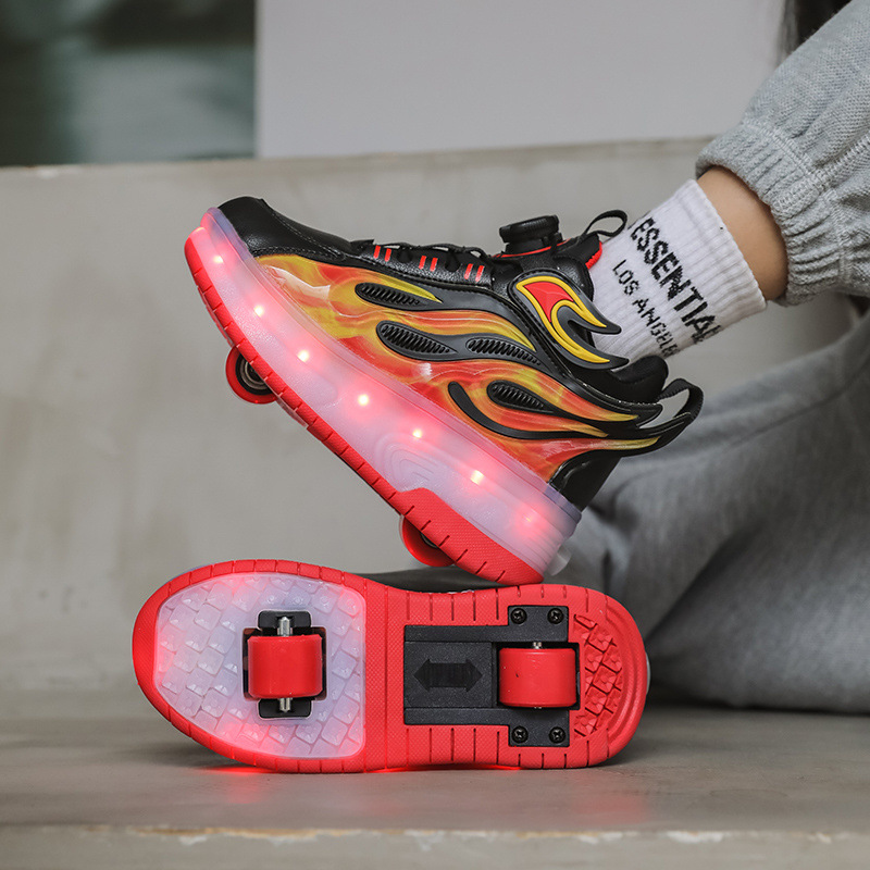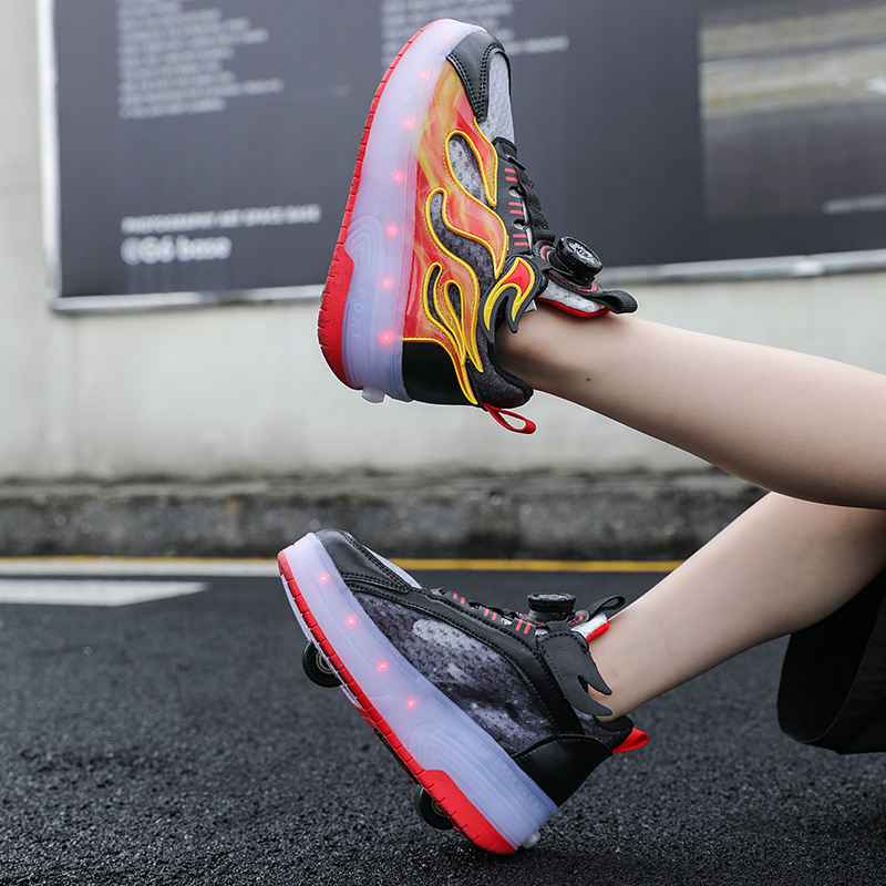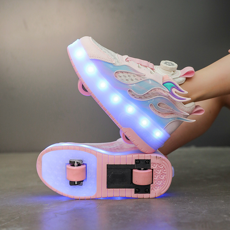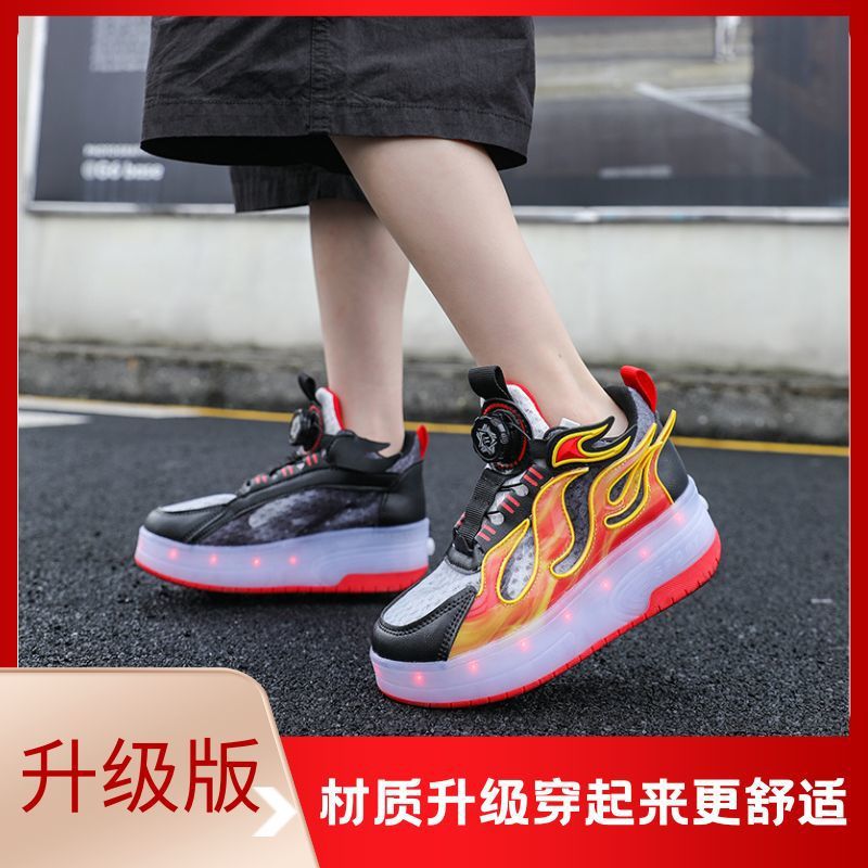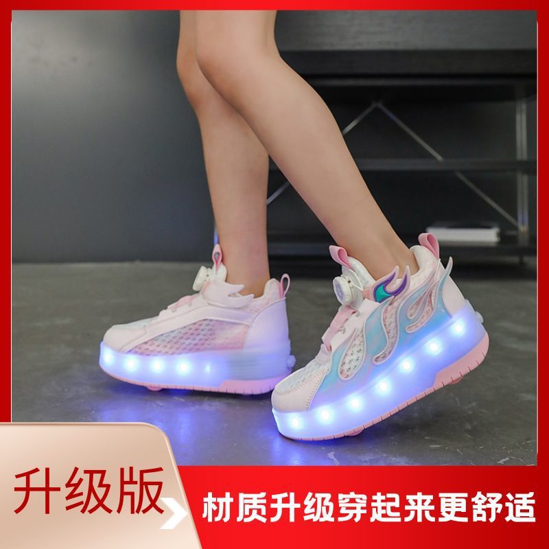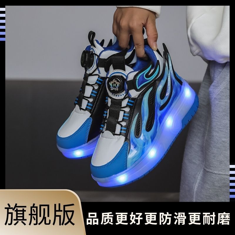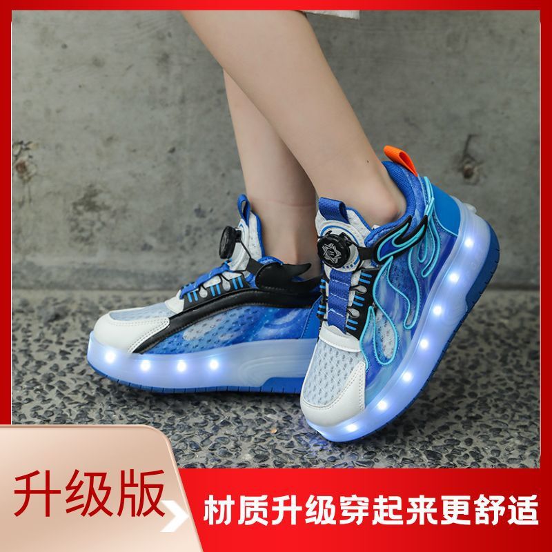 어린이 헬루 신발 2024 봄 새 소년 2 륜 스포츠 스케이트 번쩍이는 불빛 큰 어린이 스케이트 폭발 신발스토어 가기