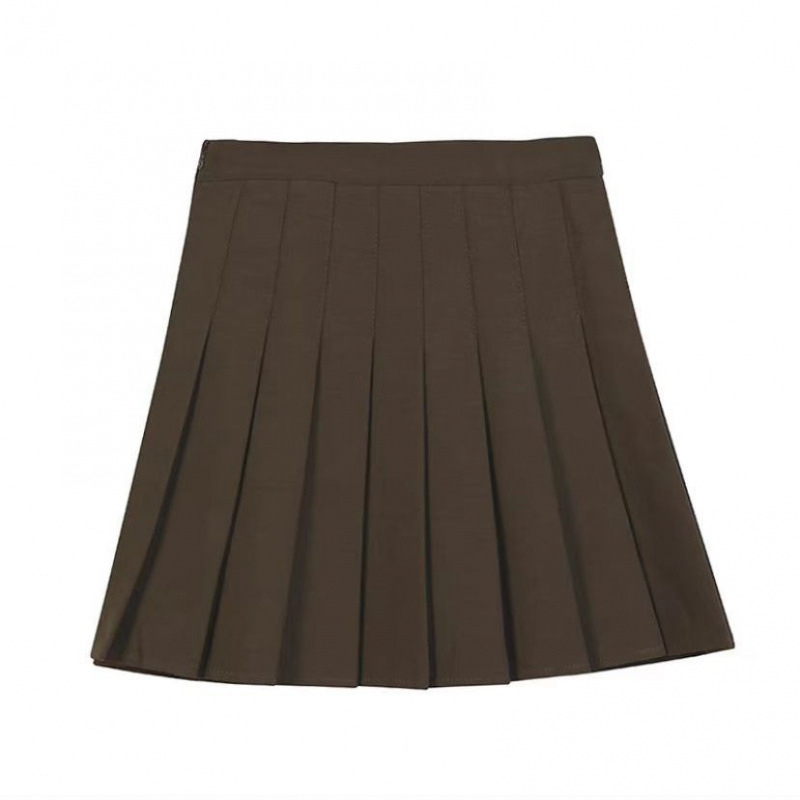 • 고품질 주름 방지 안감이 있는 카키색 플리츠 스커트