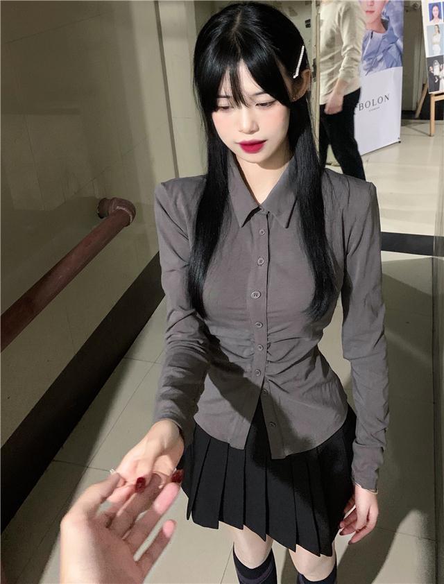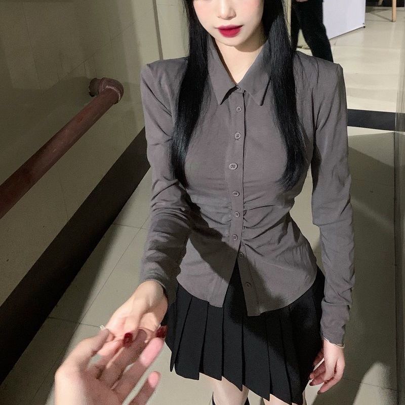 타이트 허리 긴팔 셔츠 여성 디자인 센스 니쉬 새로운 슬림 핏 슬리밍 세련된 셔츠 Xuejie 스타일 내부 탑스토어 가기