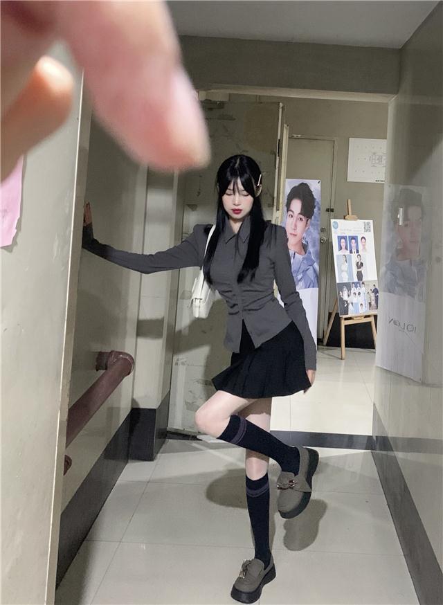 • 다크 그레이 긴 소매 + 버건디 스트라이프 넥타이 고품질 버전 재고 있음