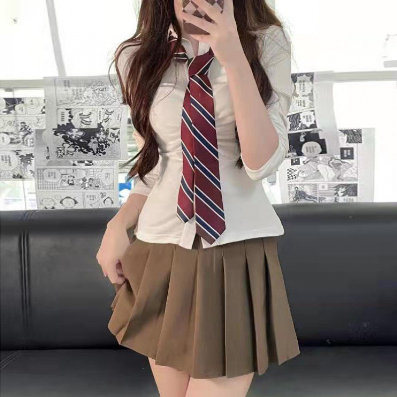 • 유백색 긴팔 + 버건디 스트라이프 넥타이, 고급 버전 재고 있음