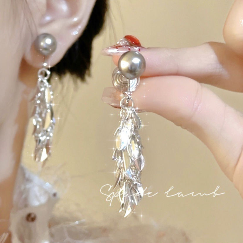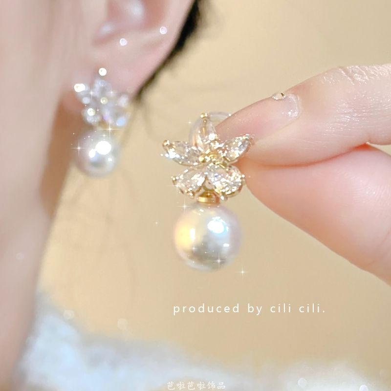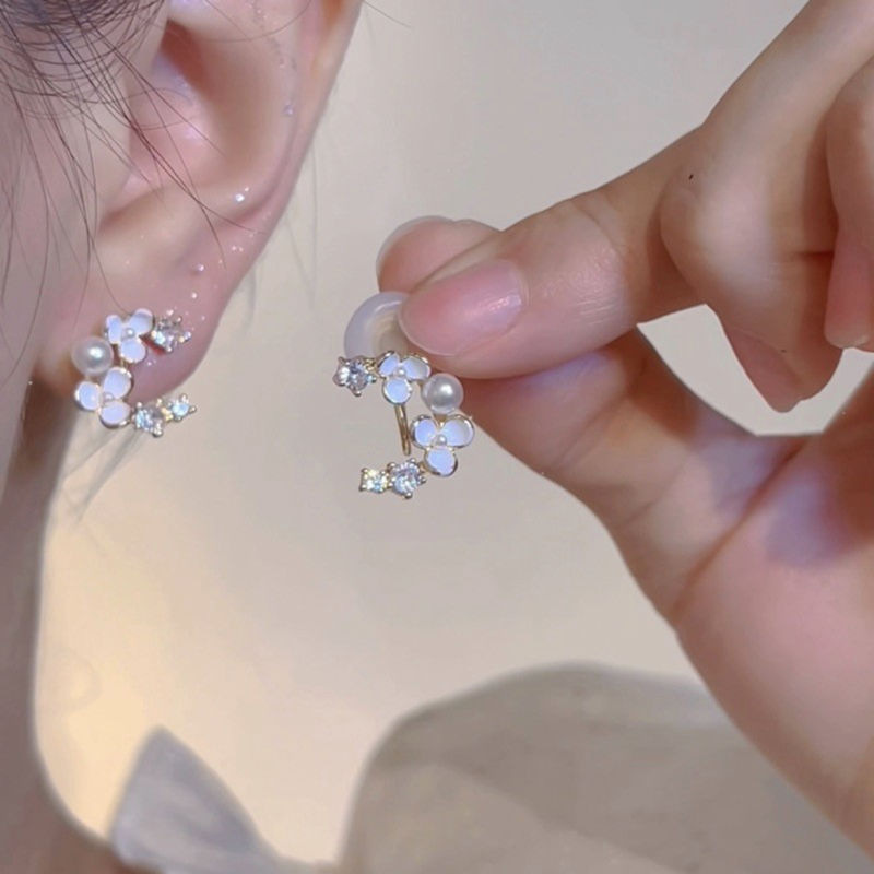 귀 구멍이없는 진주 동백 모기 접시 귀 클립 여성의 새로운 고급 감각 꽃 프랑스 우아한 귀걸이 귀걸이스토어 가기