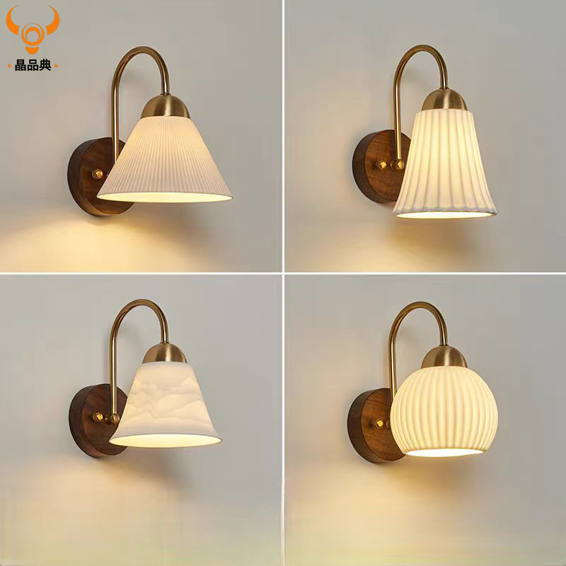 복고풍 간단한 선 스타일 골동품 벽 램프 복도 거실 침실 침실 세라믹 벽 램프 중산 램프스토어 가기