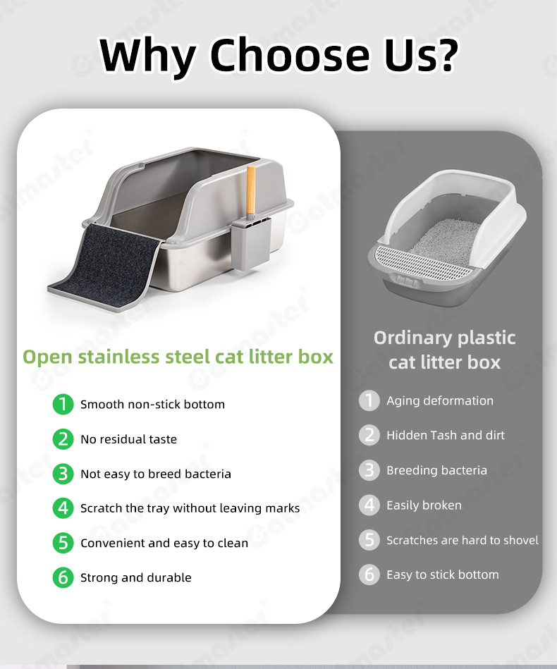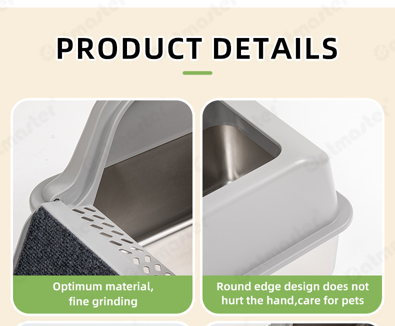 국경 스테인레스 스틸 고양이 스크래치 패드 고양이 쓰레기 상자 안티 스플래쉬 큰 공간을 열고 닫은 이중 목적 고양이 쓰레기 상자를 쉽게 청소할 수 있습니다.스토어 가기