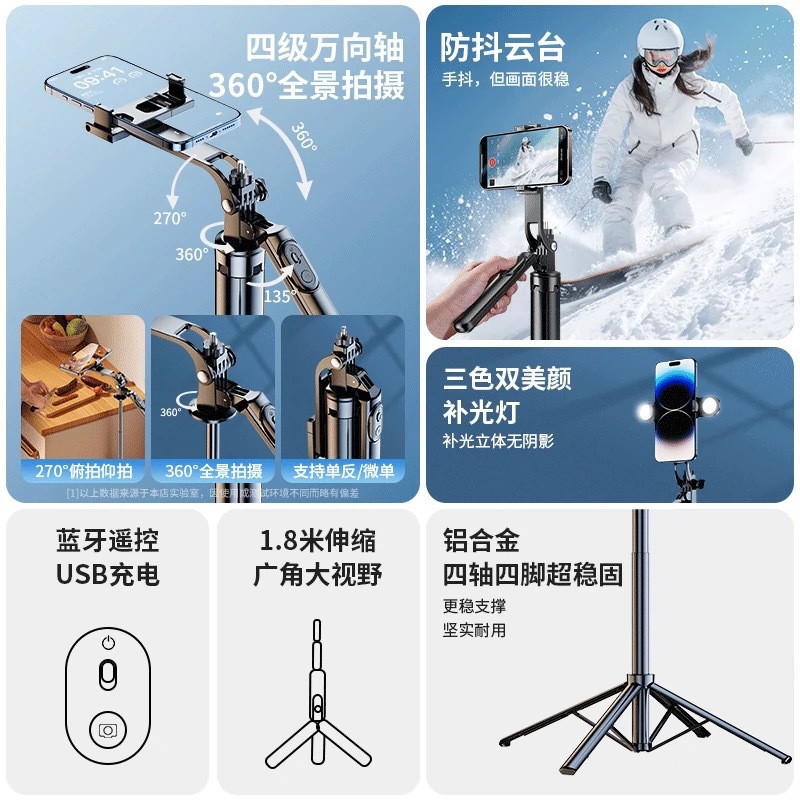 새로운 4 축 스마트 짐벌 블루투스 셀카 스틱 라이브 안티 쉐이크 뷰티 길어진 플로어 스탠딩 휴대 전화 스탠드 삼각대