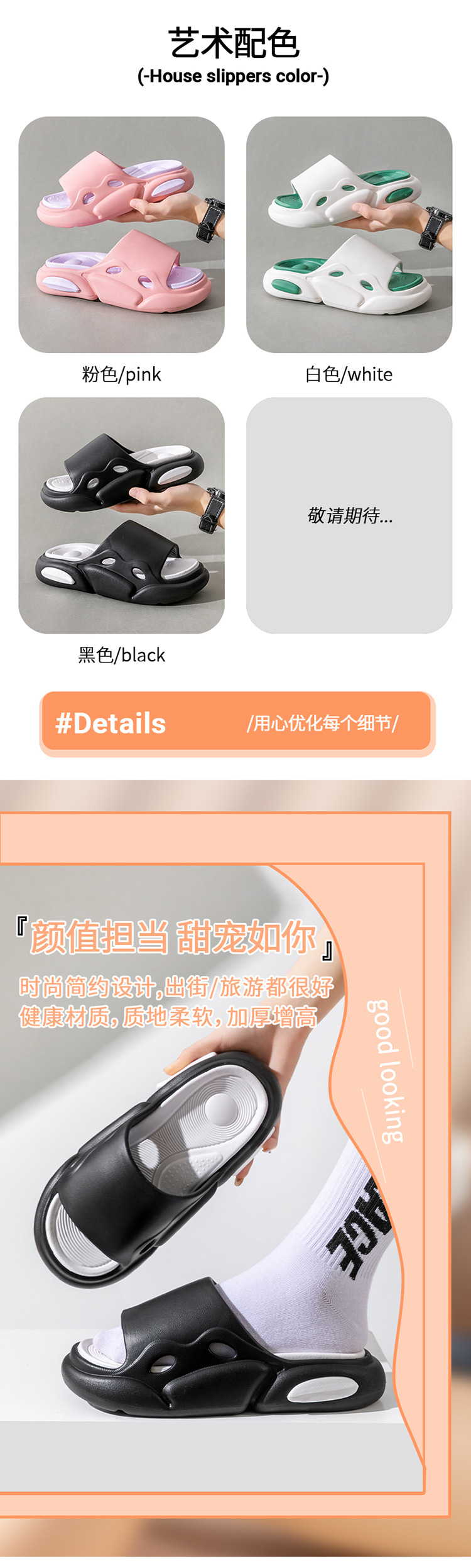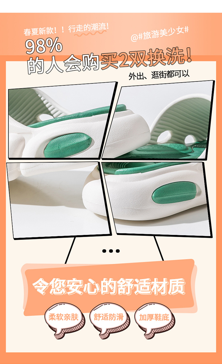 温馨提示:EVA材质拖鞋需避免高温暴晒,长时间高温会导致鞋子产生变形。
