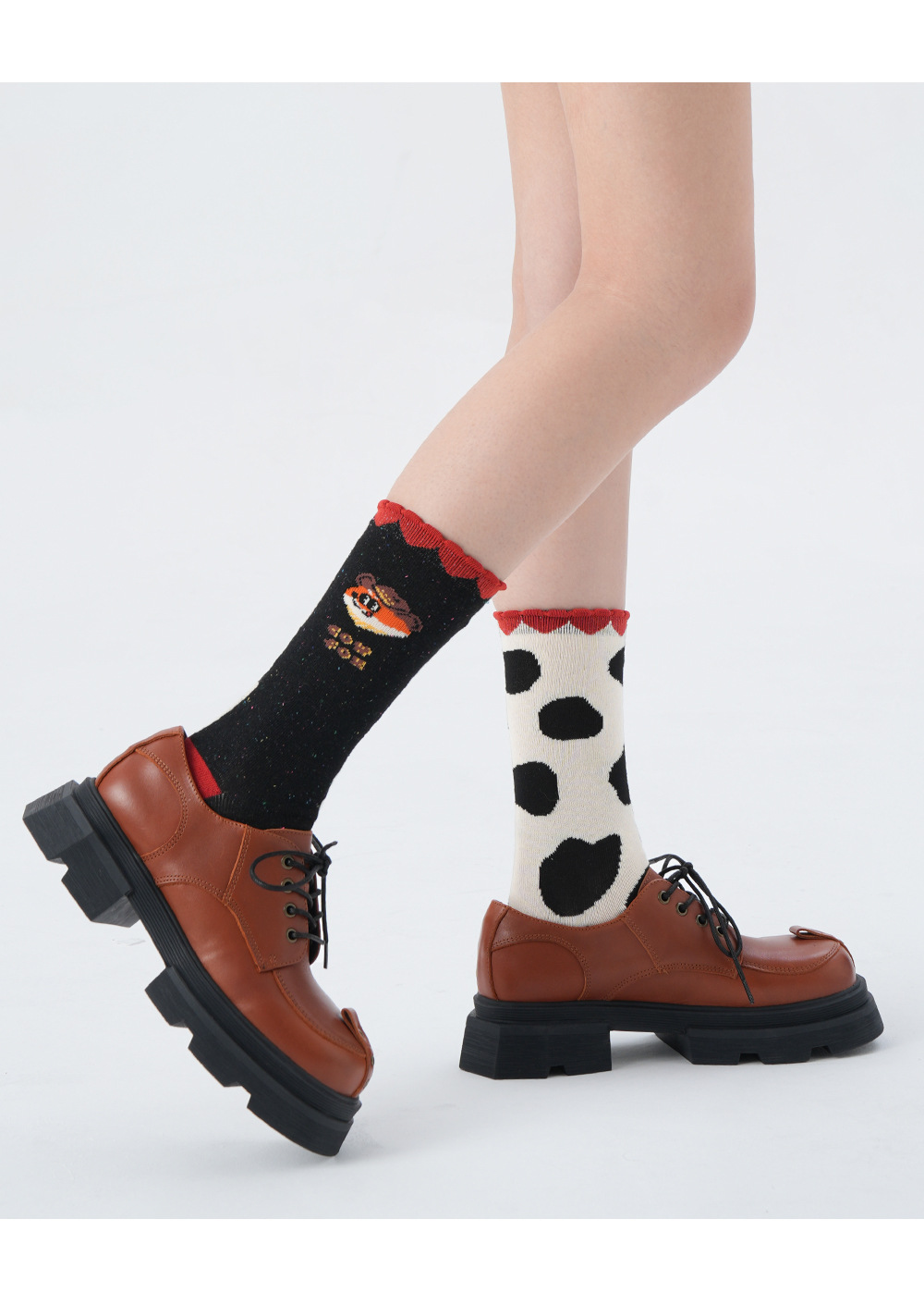 브랜드 패션 만화 귀여운 미드 튜브 양말 여성 버블 라쿠 폭스 시리즈 봄과 여름 유행 일러스트 양말 남성