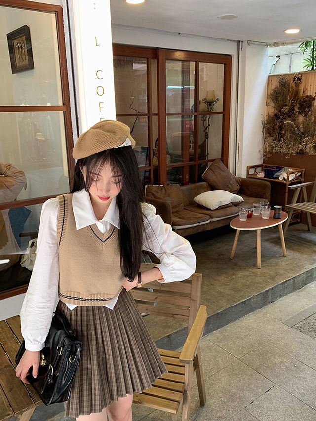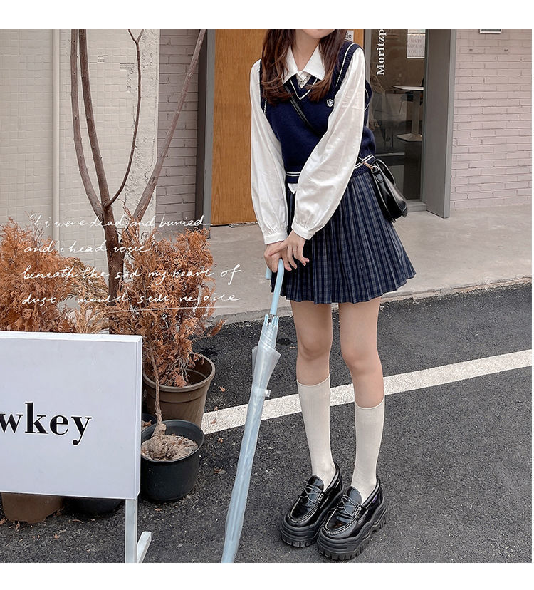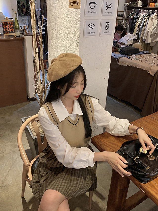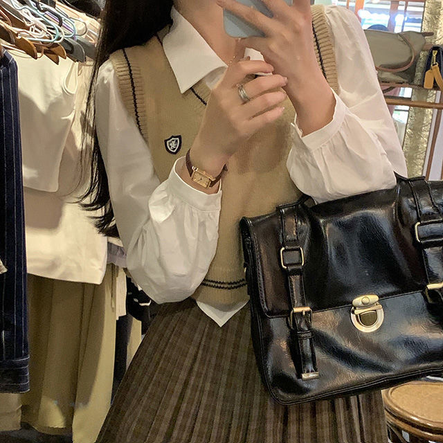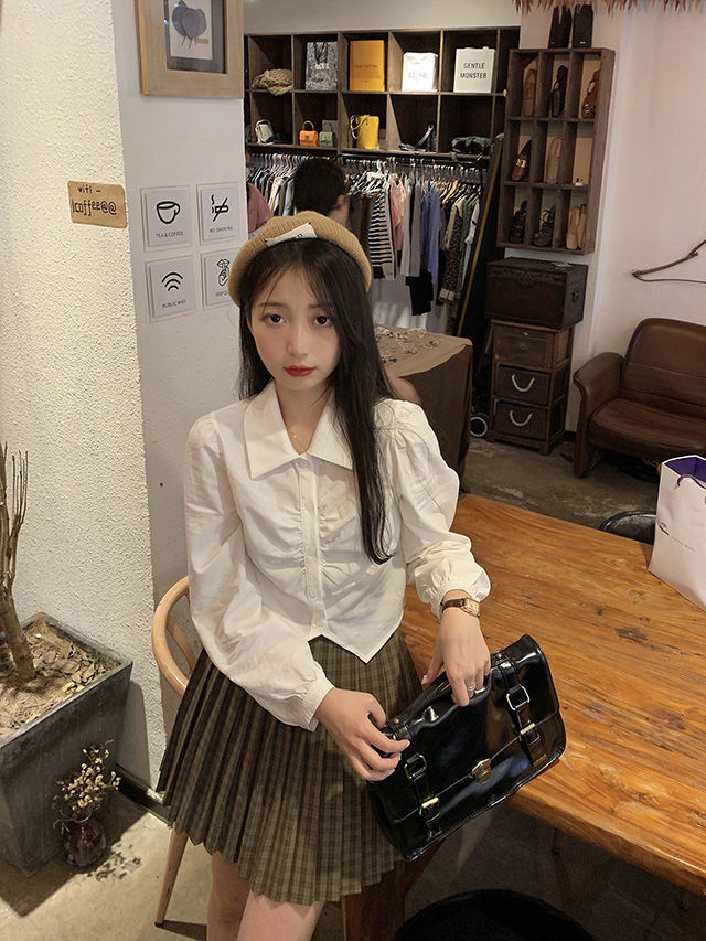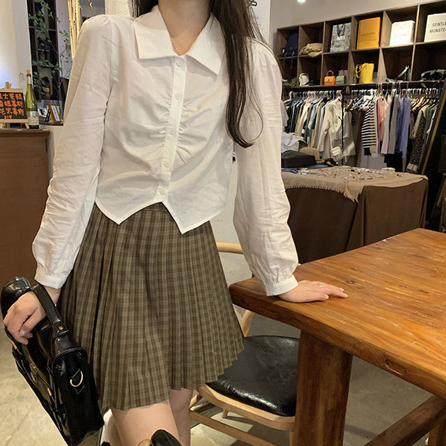 화이트 셔츠 여성의 봄과 가을 뉴 에이지 아카데미 스타일 작은 칼라 주름 짧은 내부 긴 소매 셔츠스토어 가기