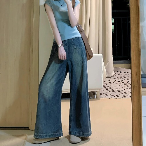 150 쇼트 쇼트 맨 레트로 빅 혼 청바지 여성용 봄 슬림 해 보이는 하이 웨이스트 루즈 스트레이트 팬츠 XS 하이 룩스토어 가기