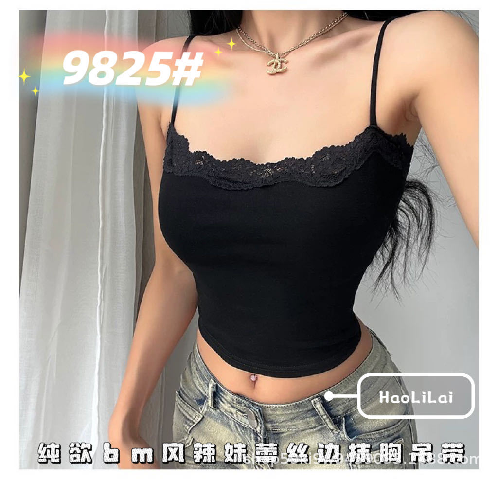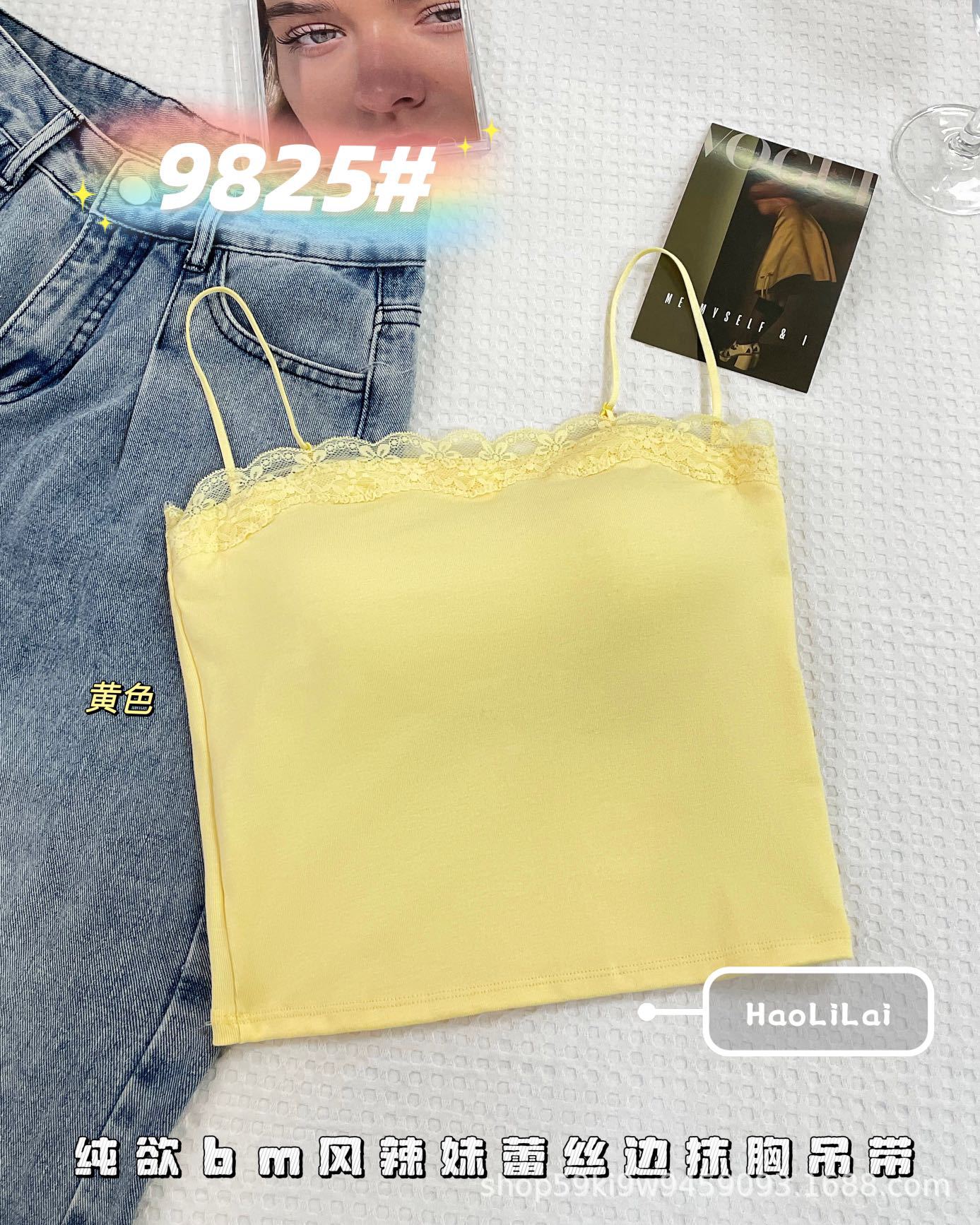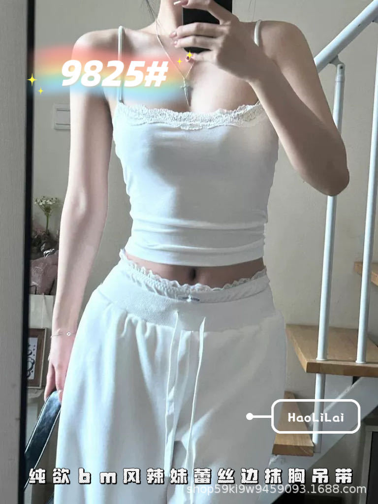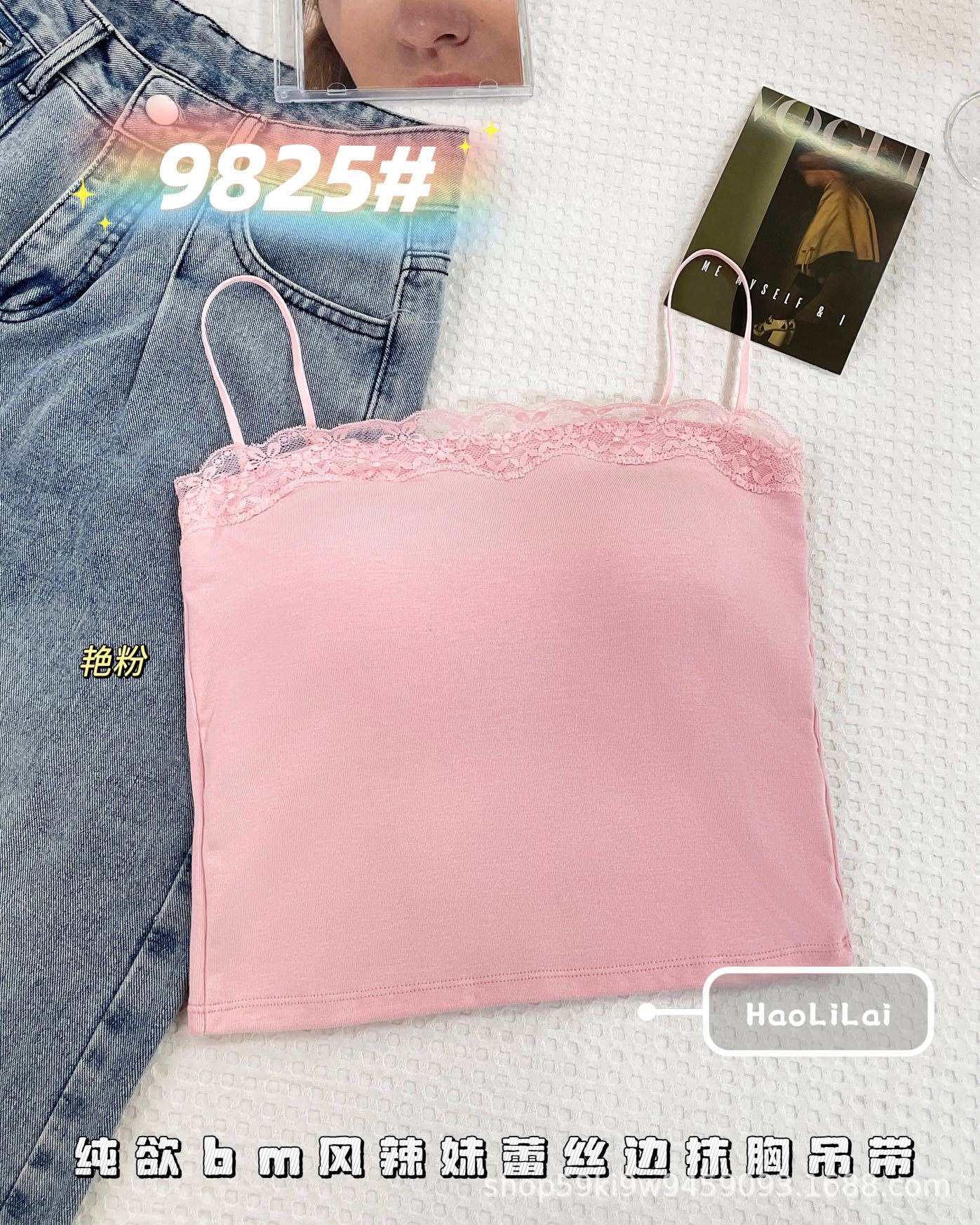 9825 # 미국 스파이스 소녀 피부 친화적 인 스티칭 레이스 카미 솔 여름 높은 허리 슬림 핏 외부 착용 내부 착용