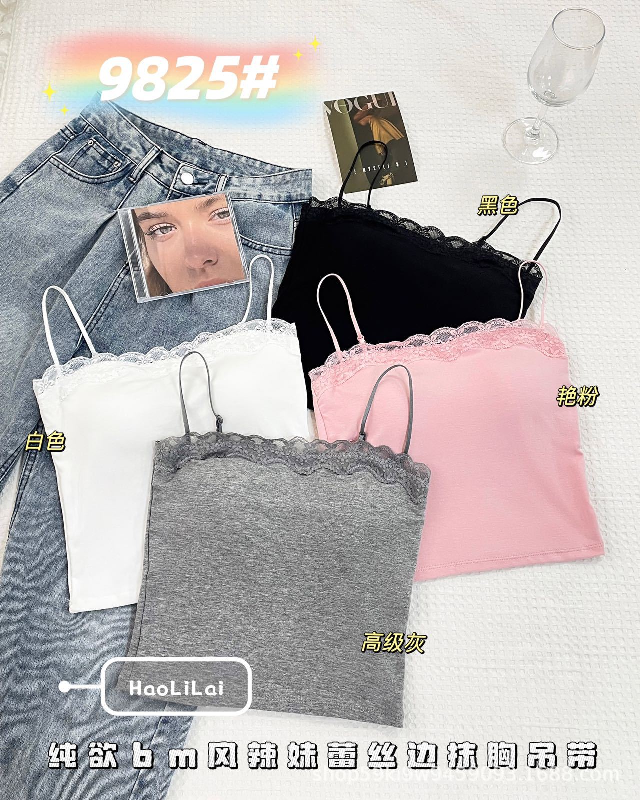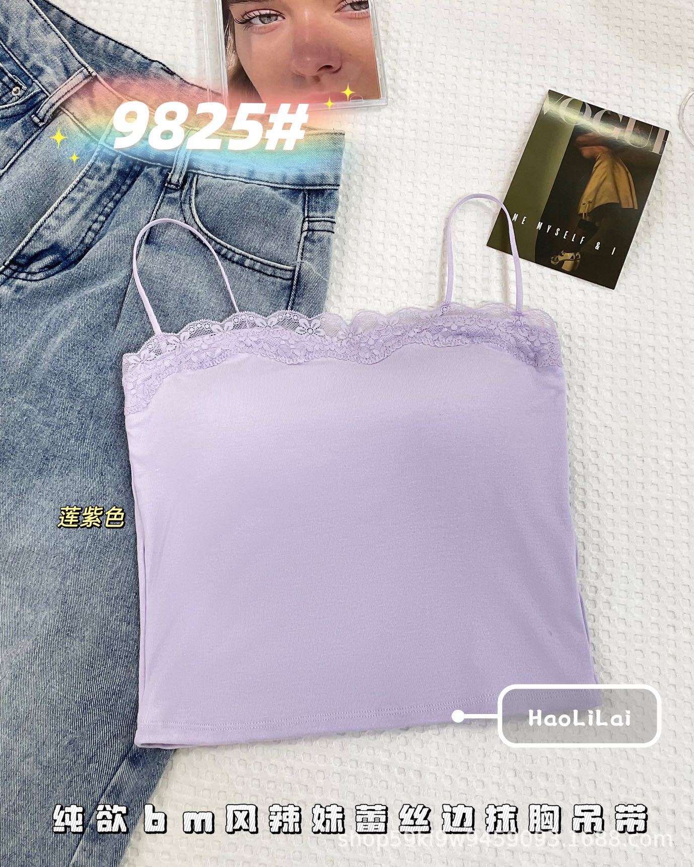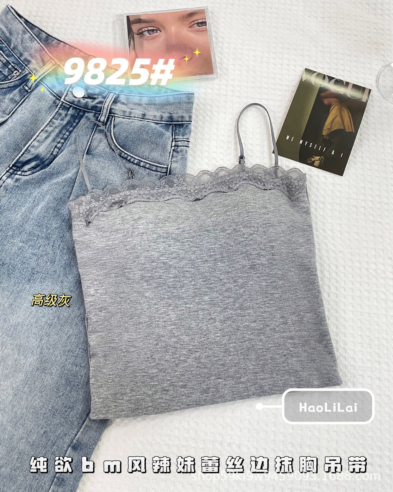 9825 # 미국 스파이스 소녀 피부 친화적 인 스티칭 레이스 카미 솔 여름 높은 허리 슬림 핏 외부 착용 내부 착용